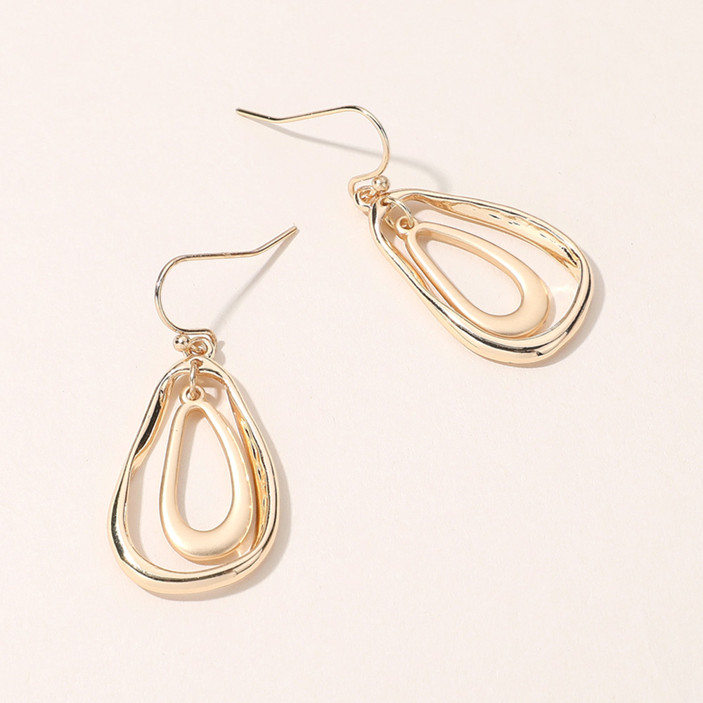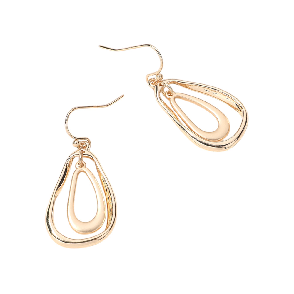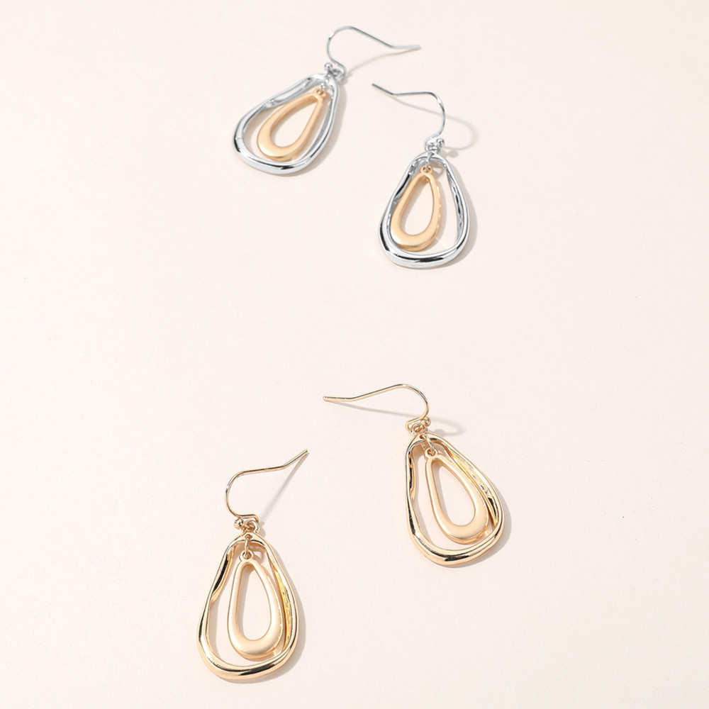 Matte Metal Hammered Double Open Teardrop Dangle Earrings