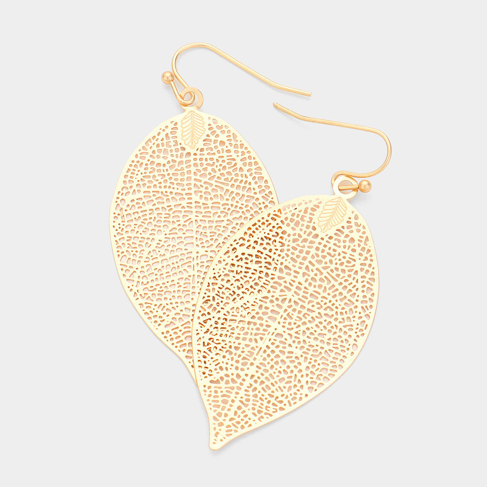 Metal Gingko Leaves Filigree Teardrop Dangle Earrings