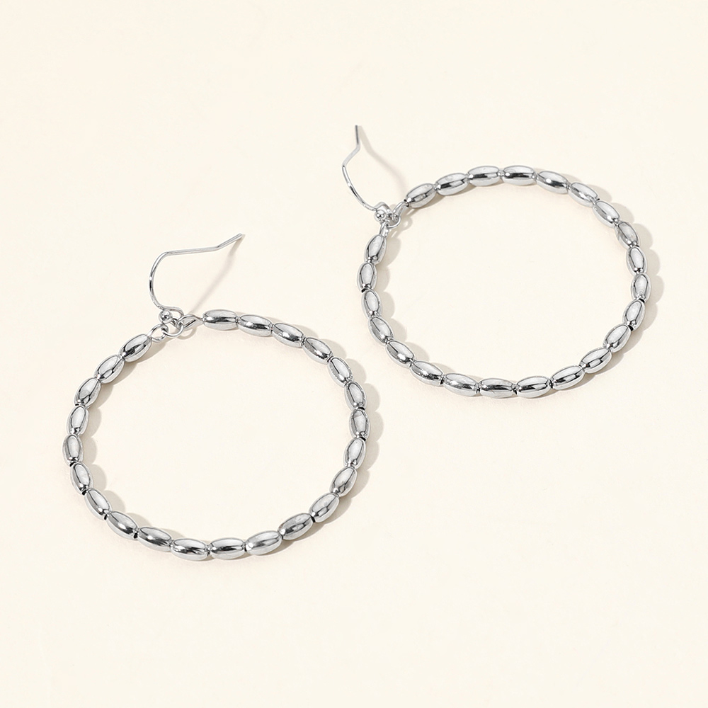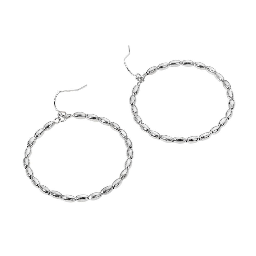 • These beaded hoop earrings feature a full circle of oval-textured beads for a refined yet effortless look. Lightweight and stylish, they add a touch of elegance to everyday outfits or evening ensembles.