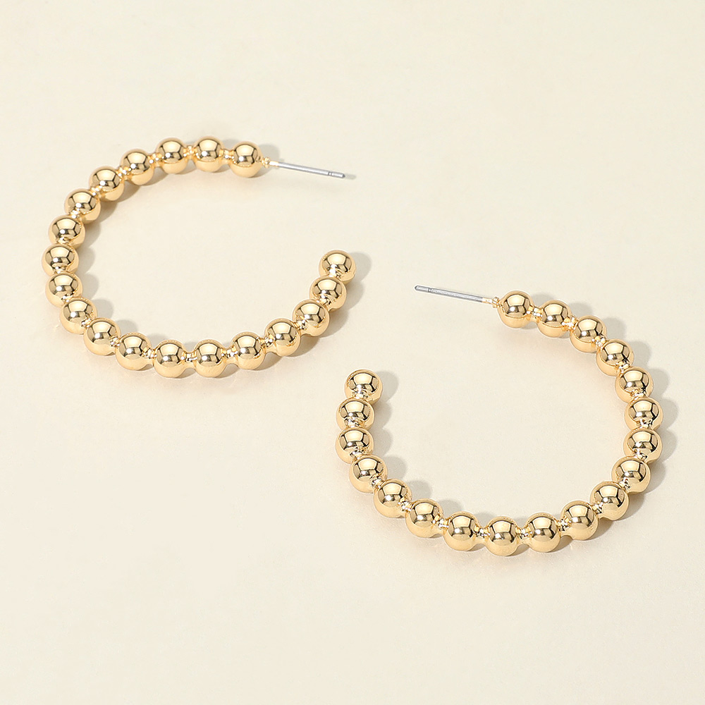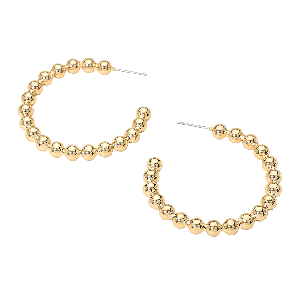 • Elevate your style with these sculpted bead hoop earrings. Featuring a sequence of smooth, polished spheres, they bring a chic, contemporary edge to everyday and evening looks. A perfect choice for minimalist elegance with a bold twist.
