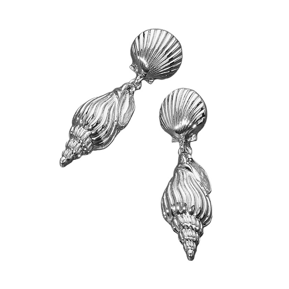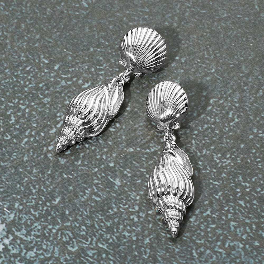 Details • Size : 0.75" X 2.1" • Post Back • Elegant shell drop earrings with intricate textured design. A statement accessory that brings a touch of seaside charm and bold style to any look, perfect for vacations or coastal-themed outfits. • Lead and Nickel Compliant