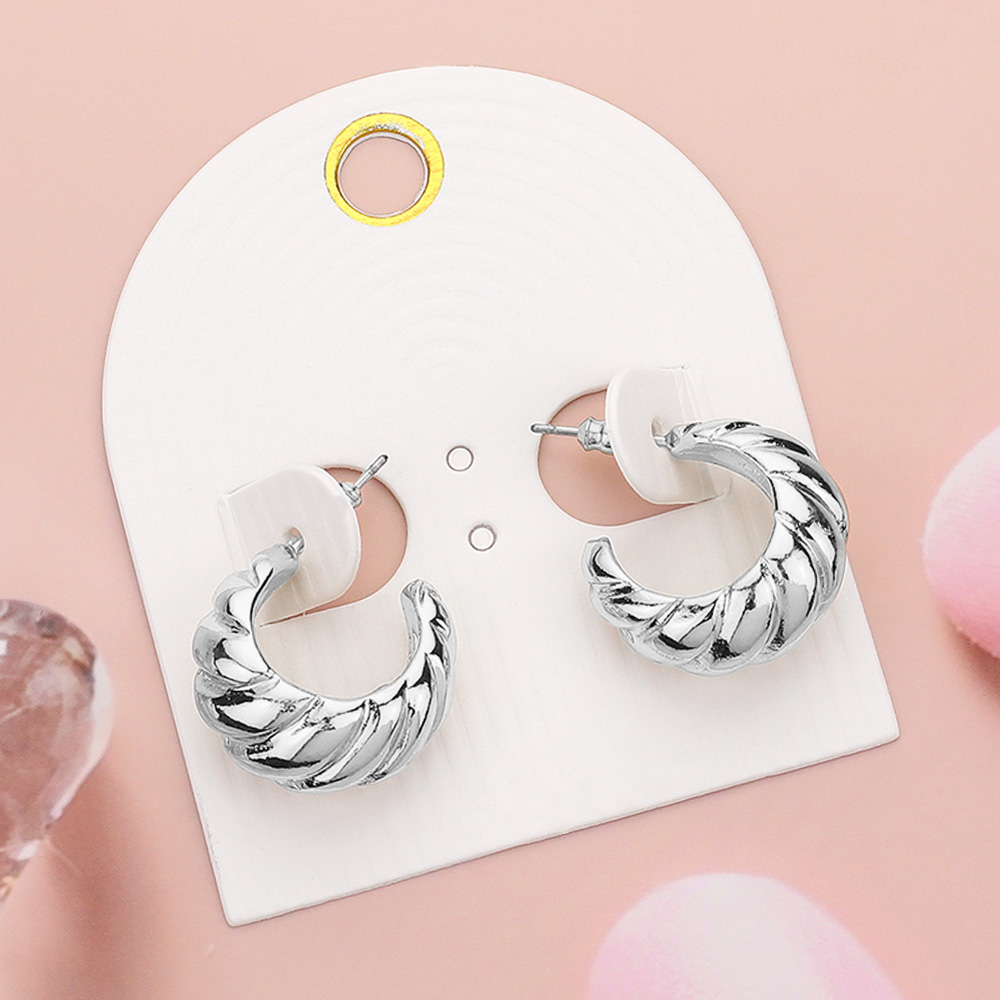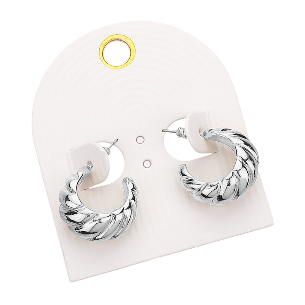 14K Gold Plated CZ Stone Paved Crisscross Hoop Earrings