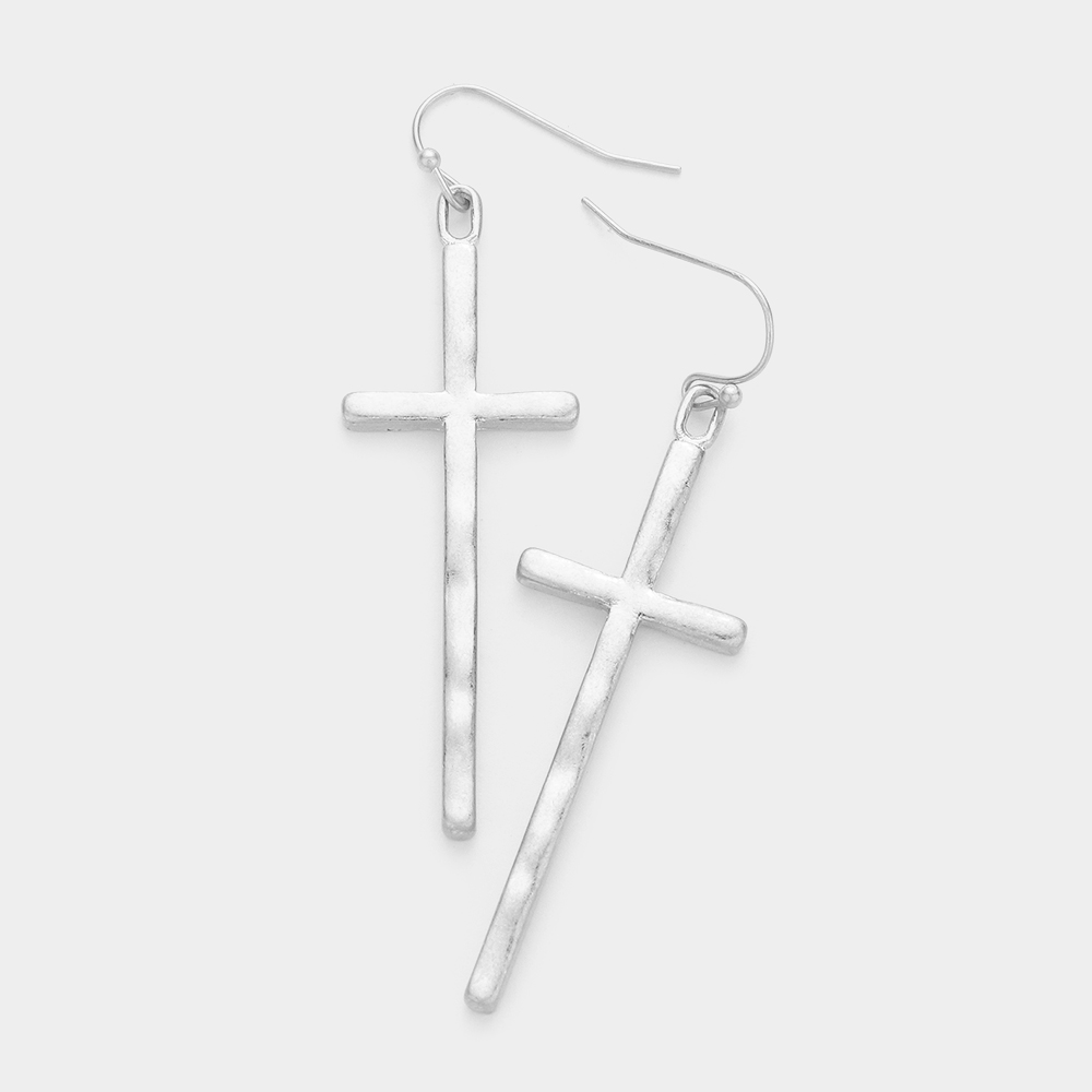 JOHN 3:16 Message Double Metal Cross Dangle Earrings