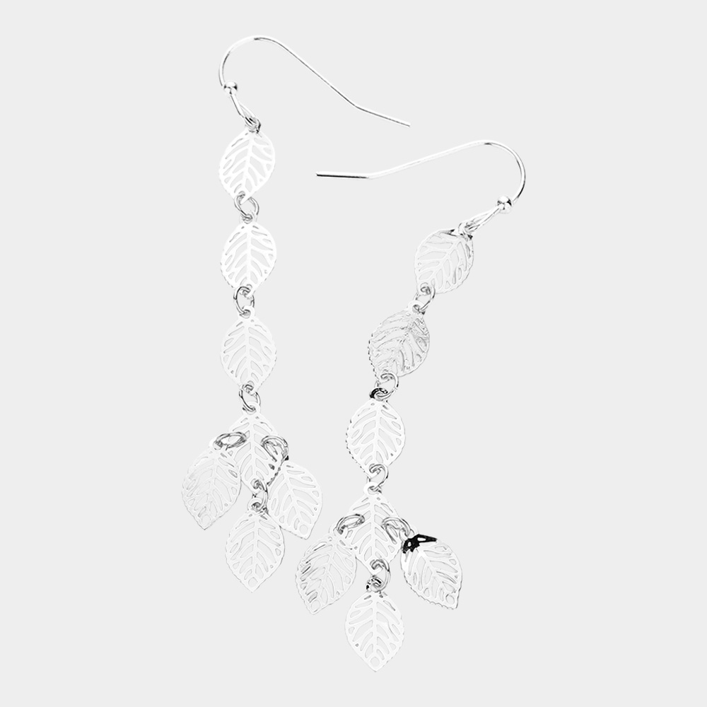 Metal Cutout Leaf Link Dropdown Dangle Earrings