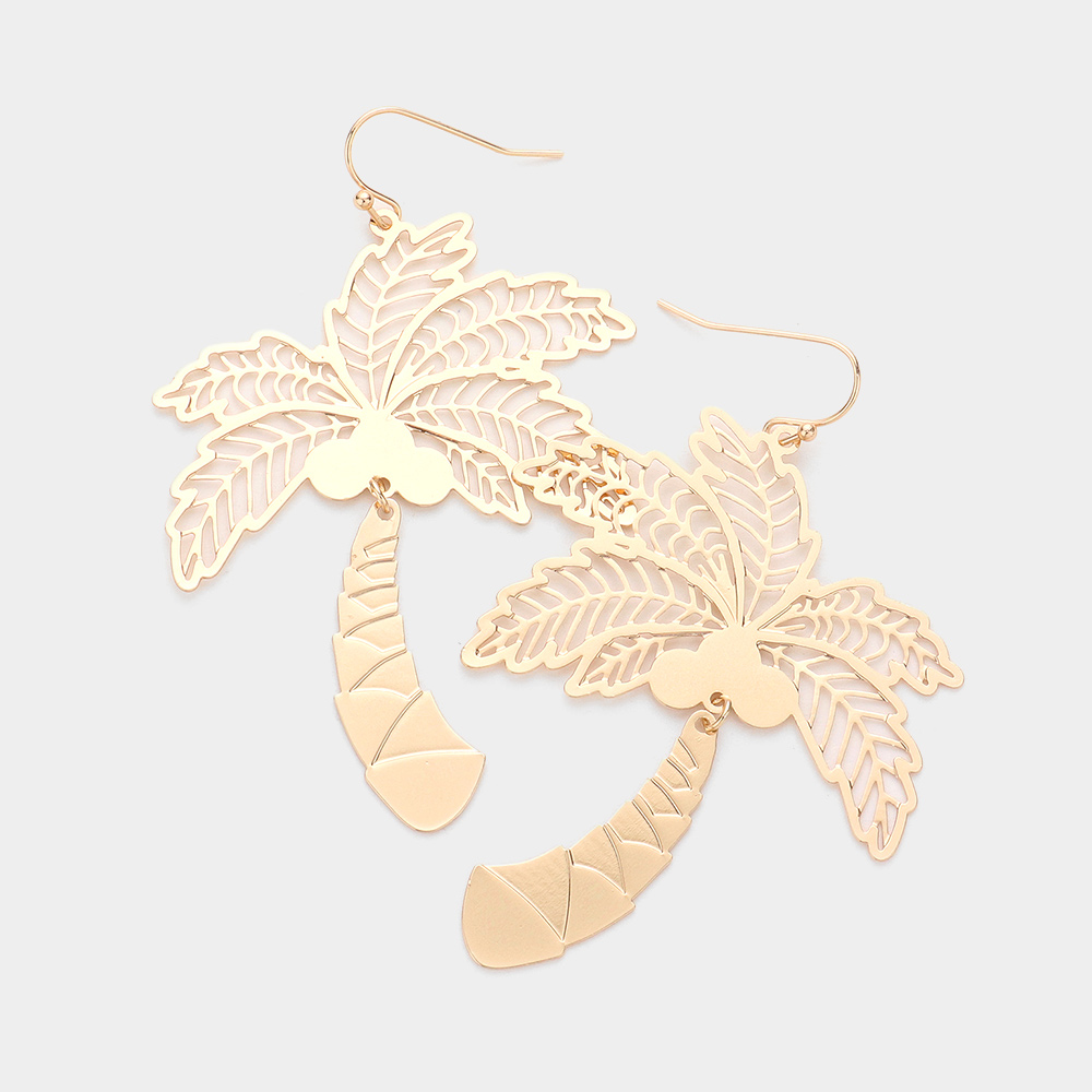 Metal Cutout Palm Tree Dangle Earrings