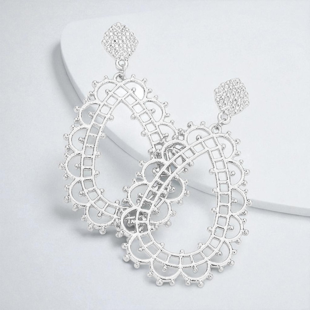 Matte Hammered Metal Geometric Chandelier Dangle Earrings
