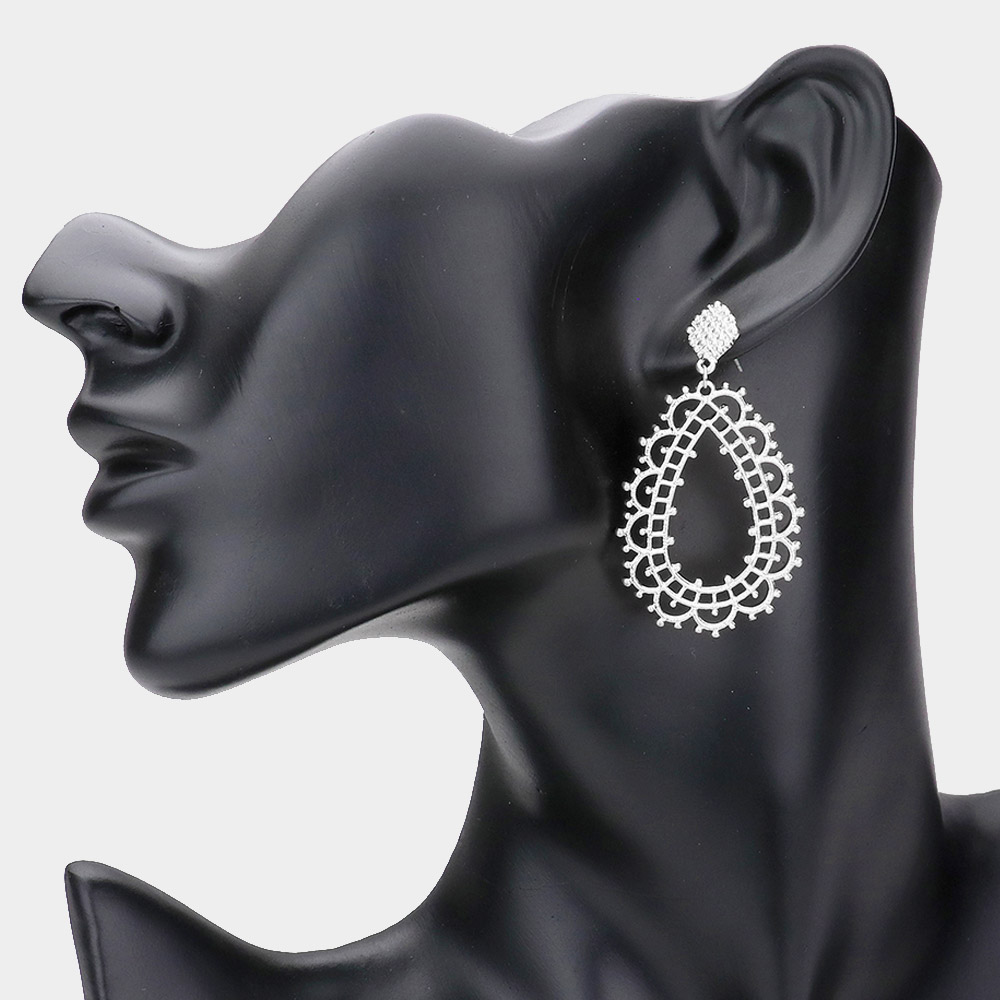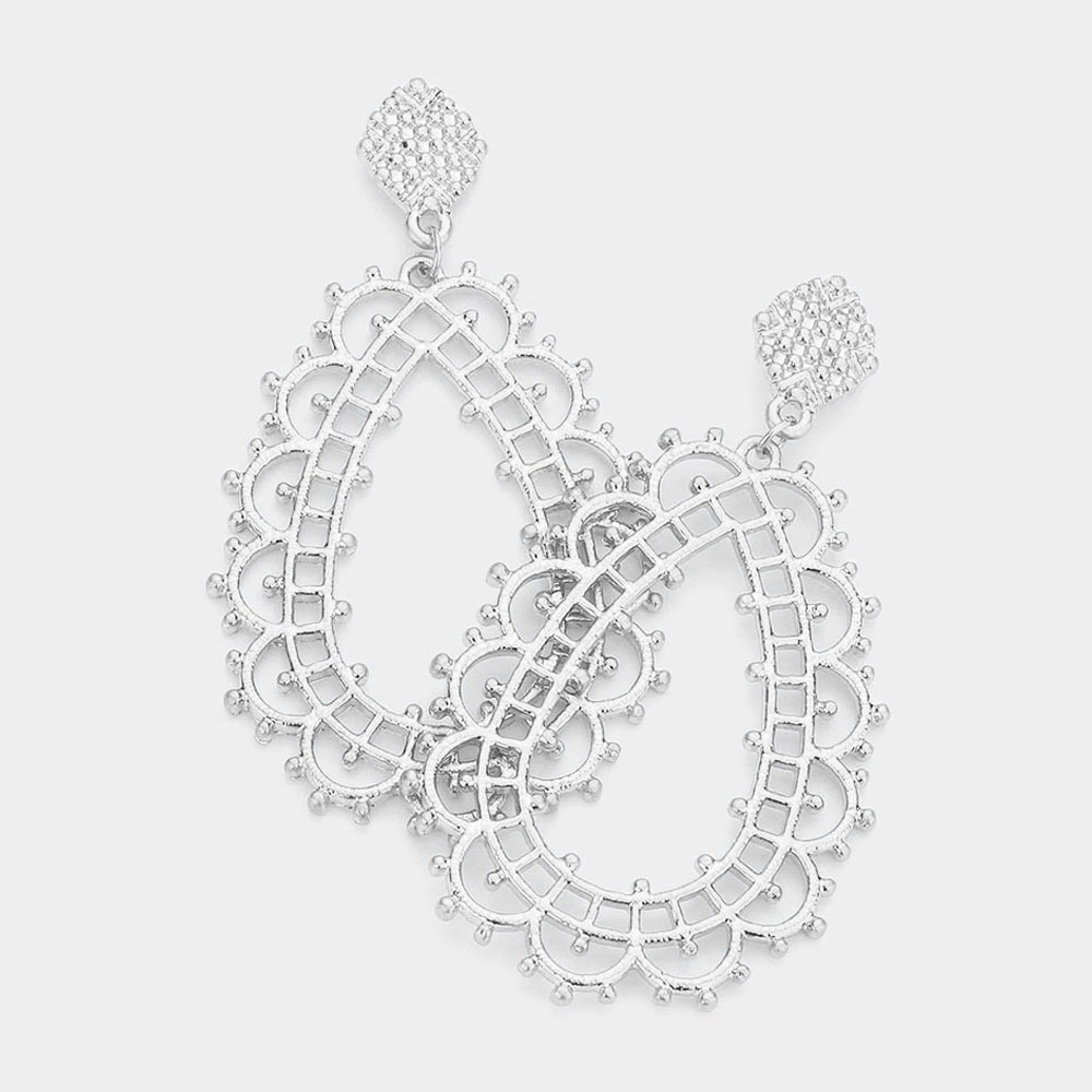 Music Nots Treble Clef Accented Open Metal Teardrop Dangle Earrings