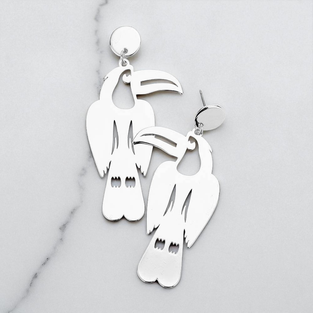 Metal Cutout Toucan Drop Earrings