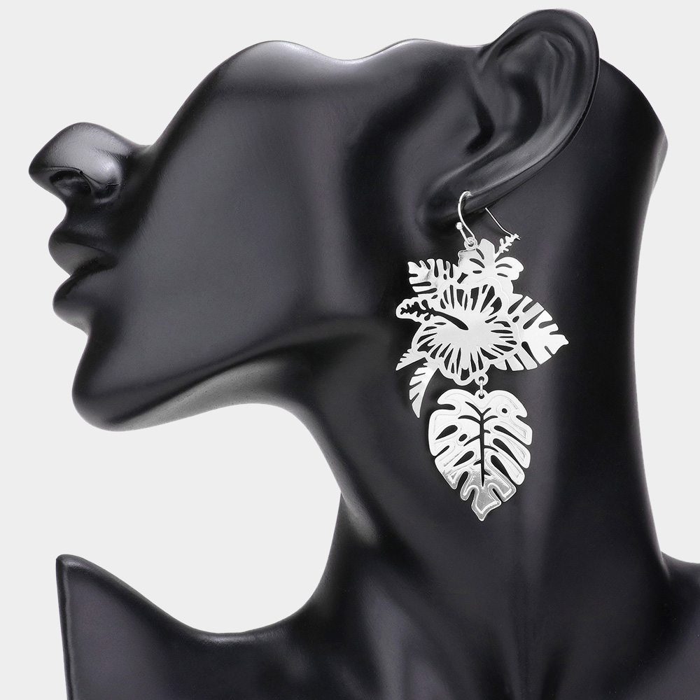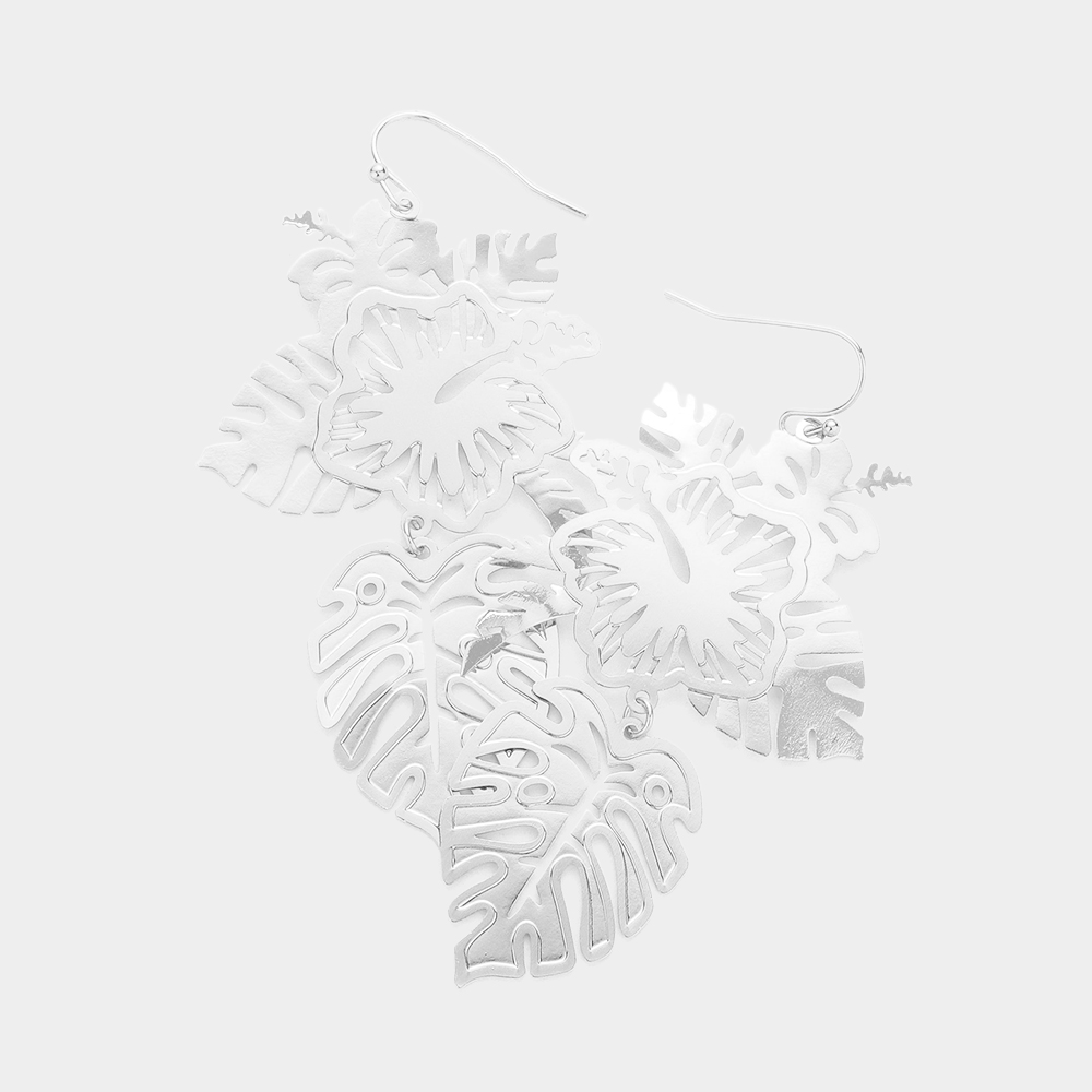Metal Cutout Tropical Leaf Link Dangle Earrings