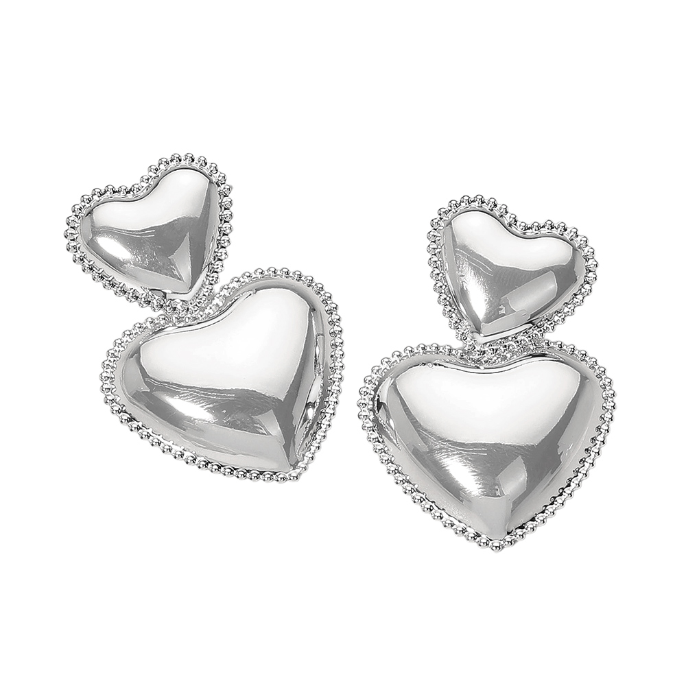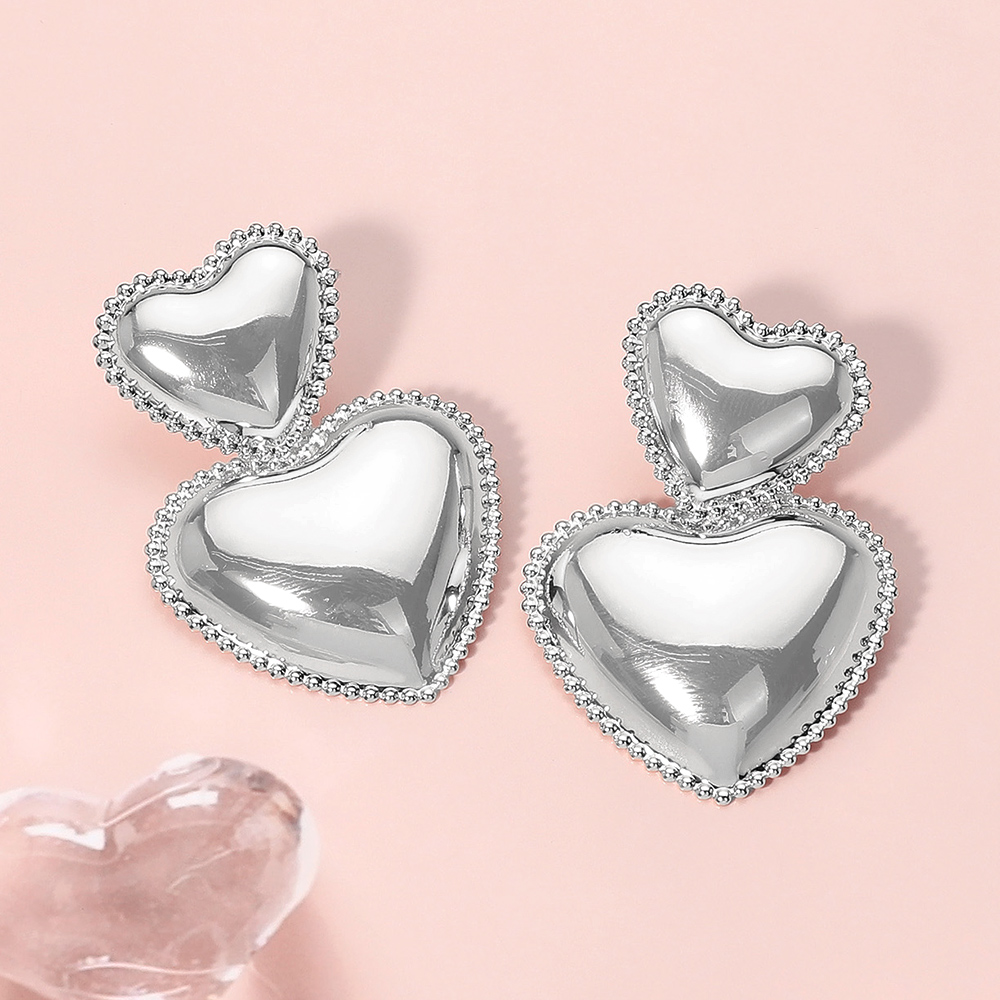 Metal Double Heart Dangle Earrings