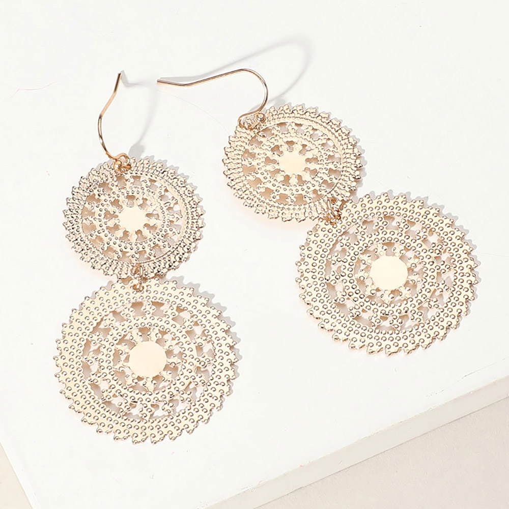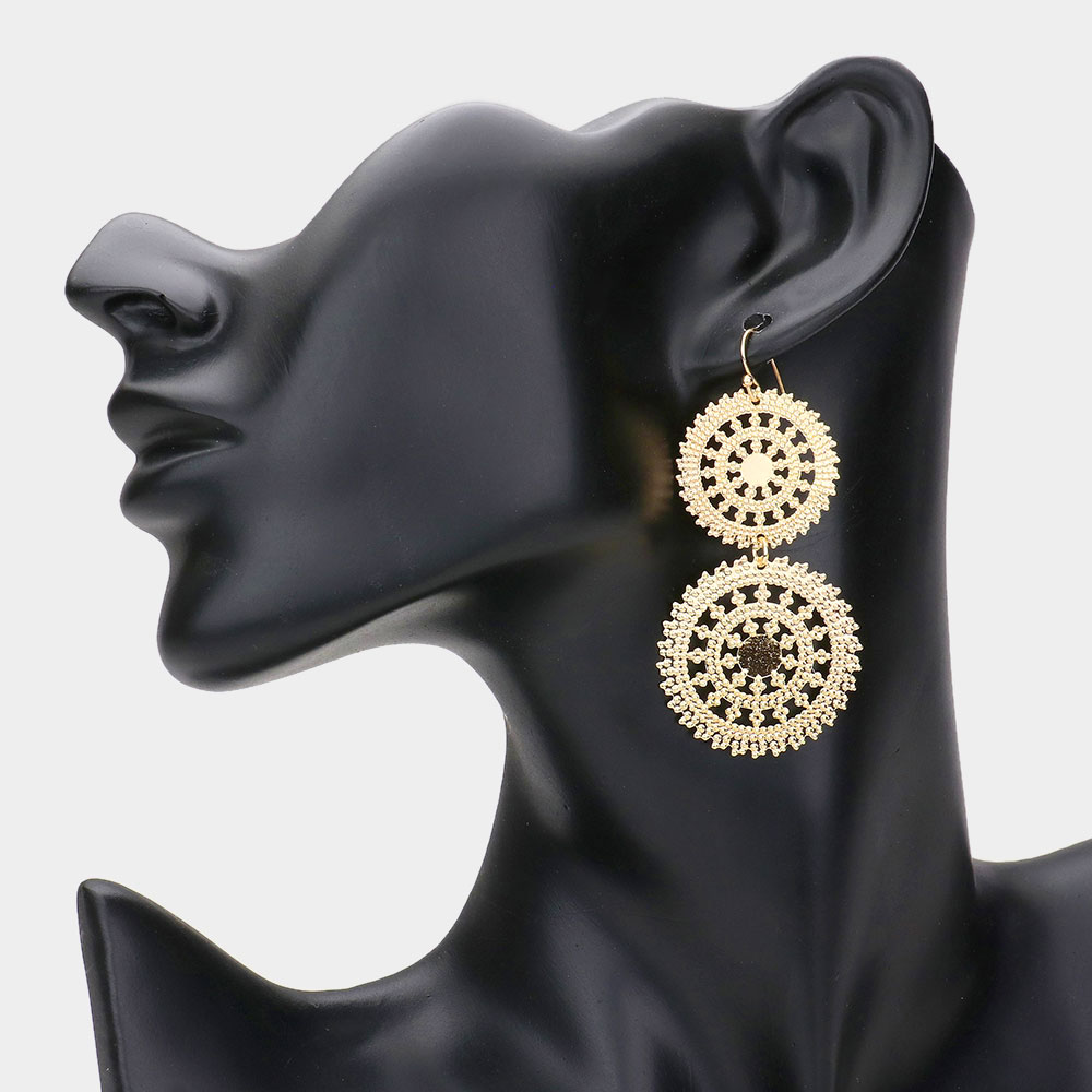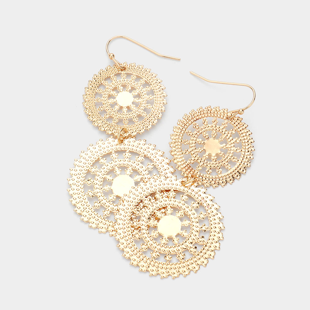 Metal Double Wheel Drop Filigree Earrings
