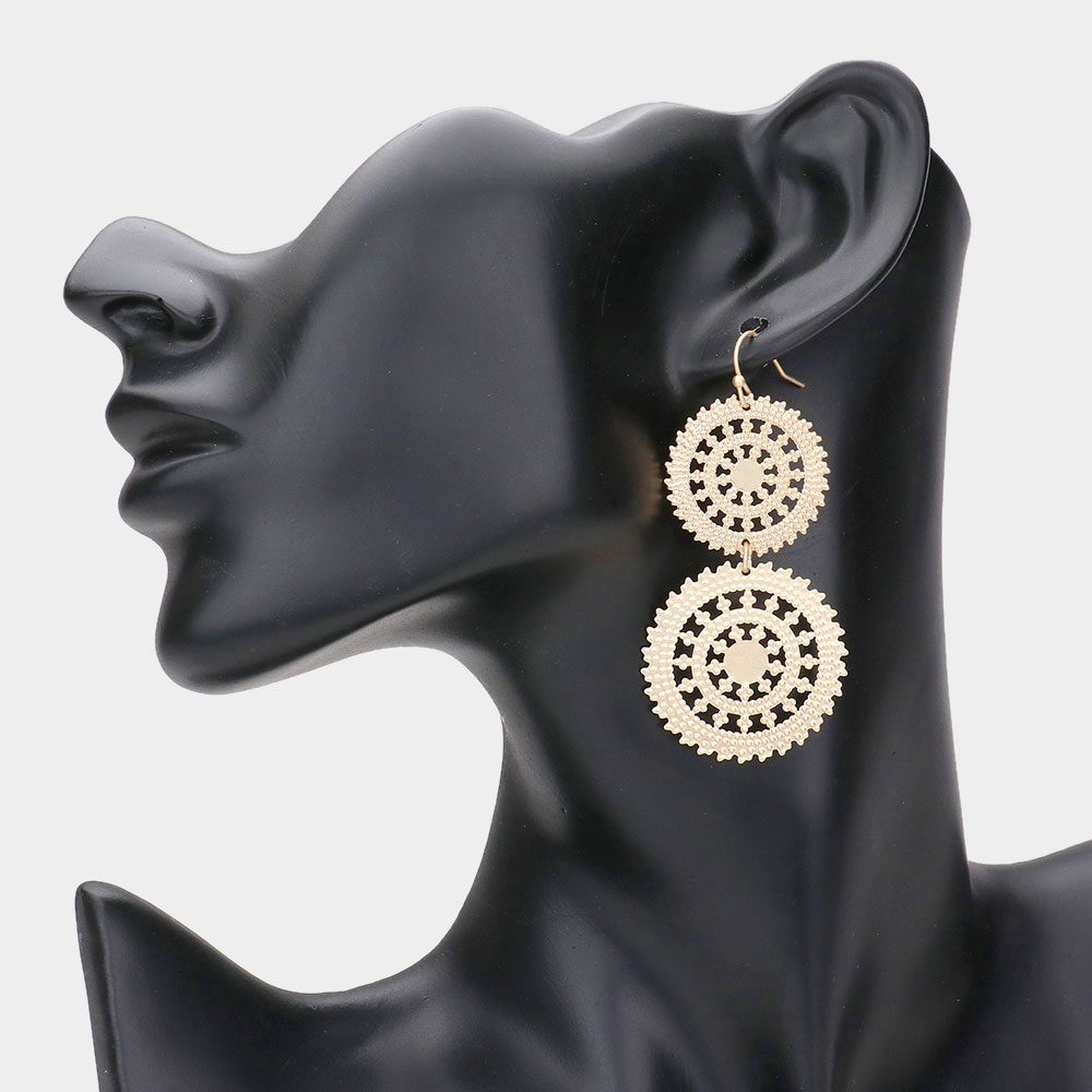 Metal Double Wheel Drop Filigree Earrings