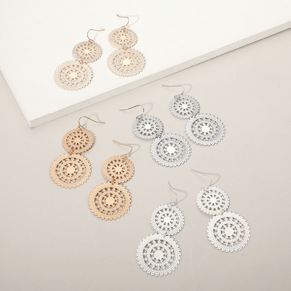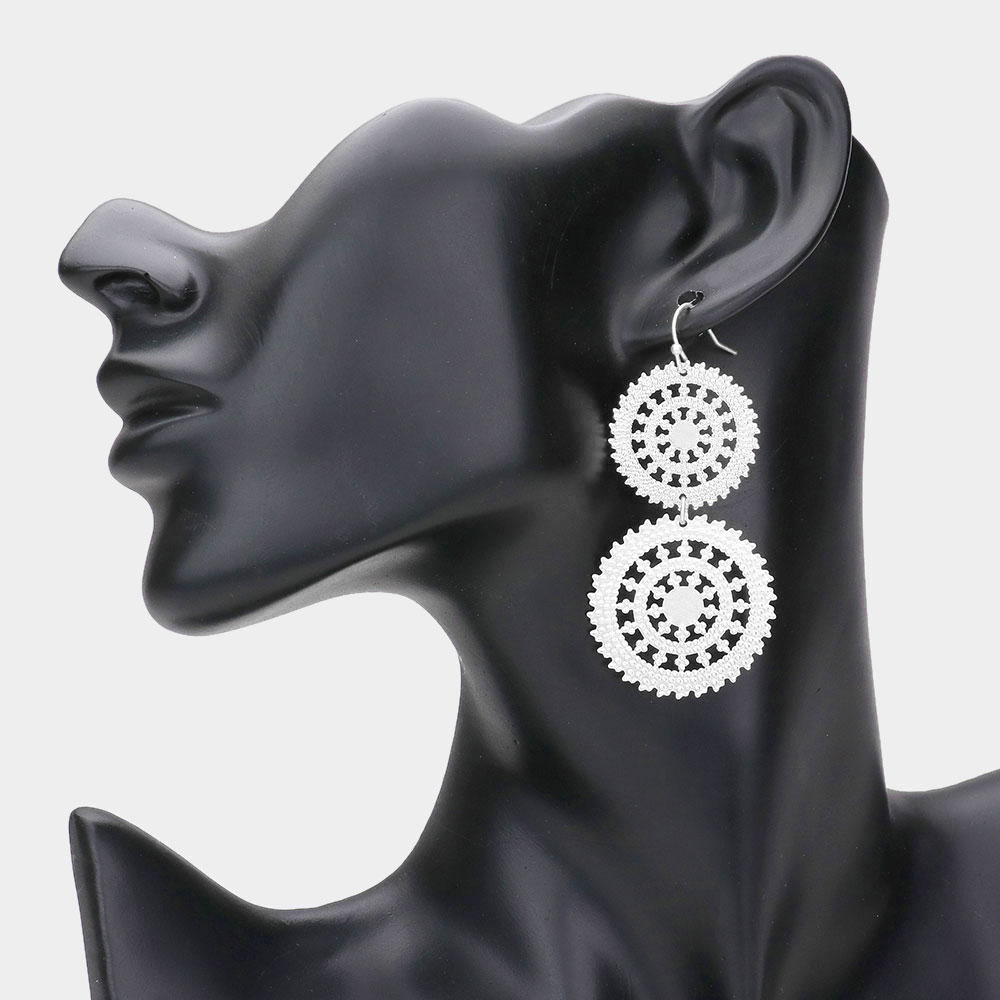 2.4 Inch Textured Metal Clip On Hoop Earrings