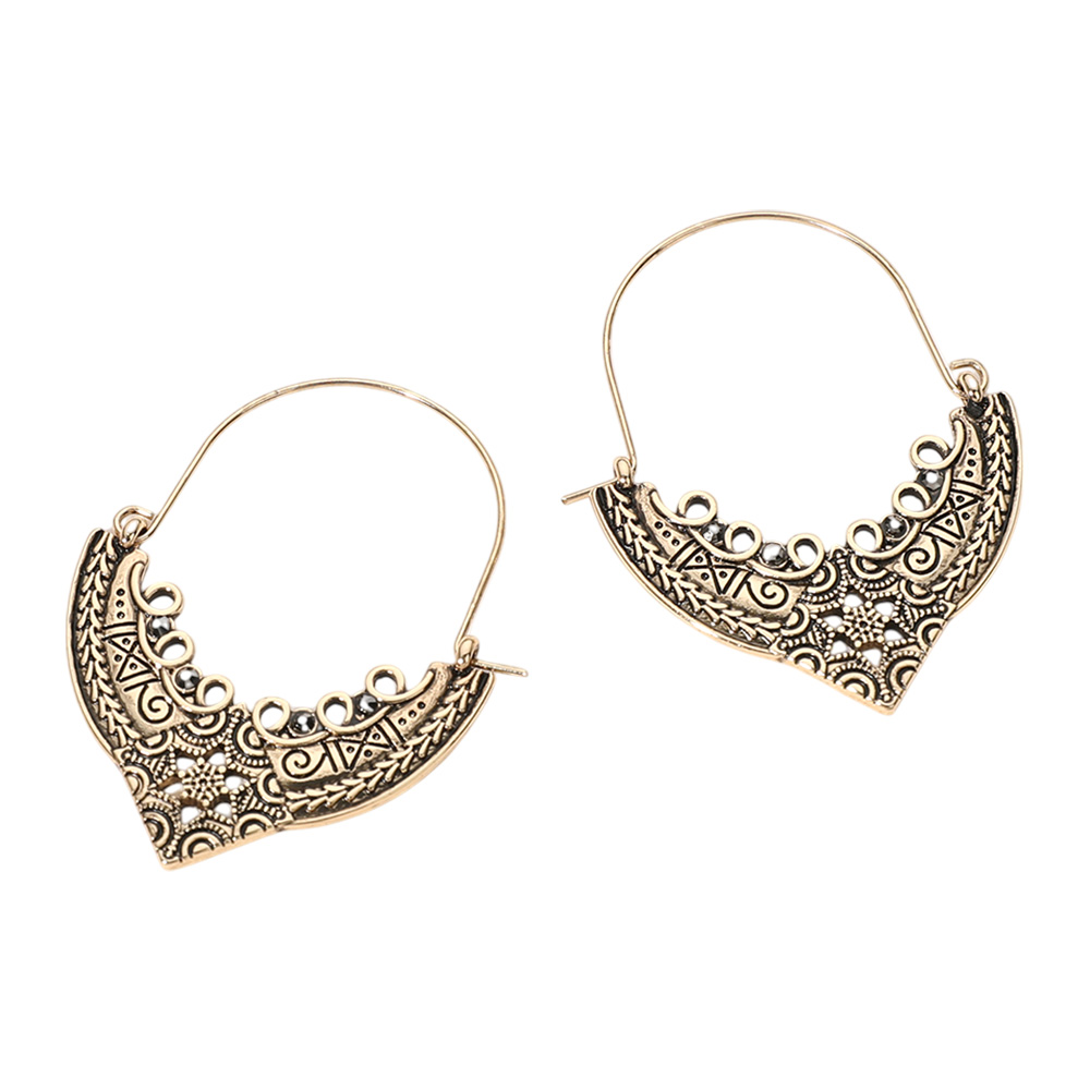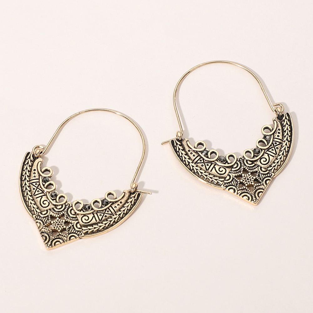 Teardrop Stone Embellished Metal Abstract Filigree Dangle Earrings