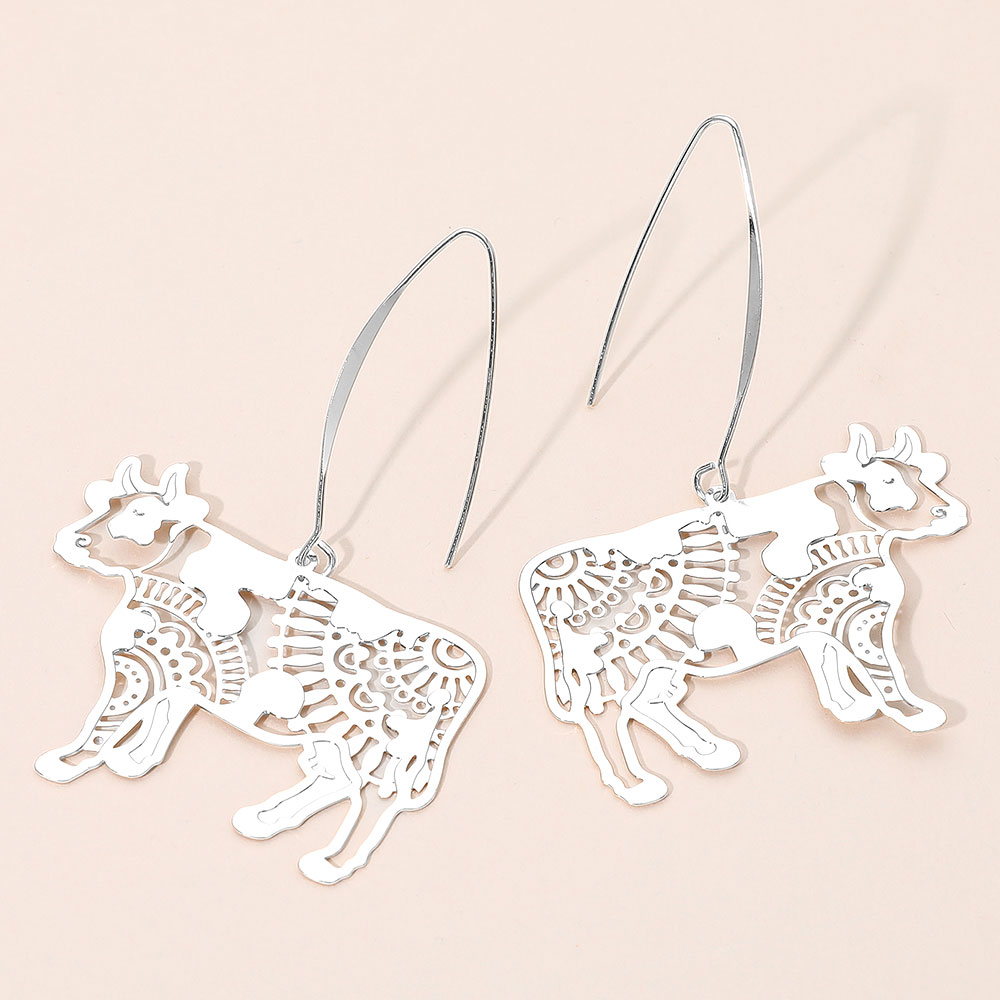 Metal Filigree Cow Dangle Earrings Metal Filigree Cow Dangle Earrings