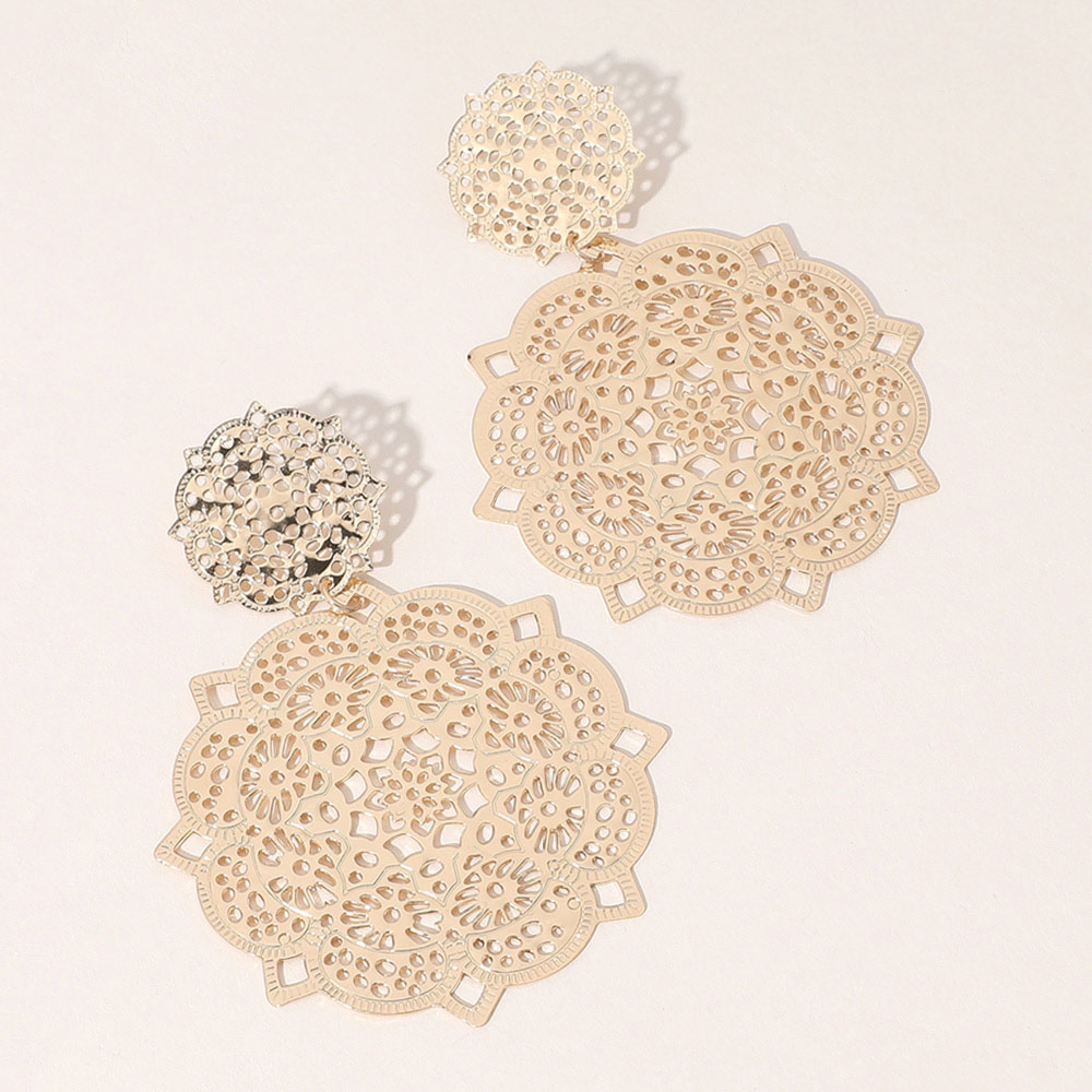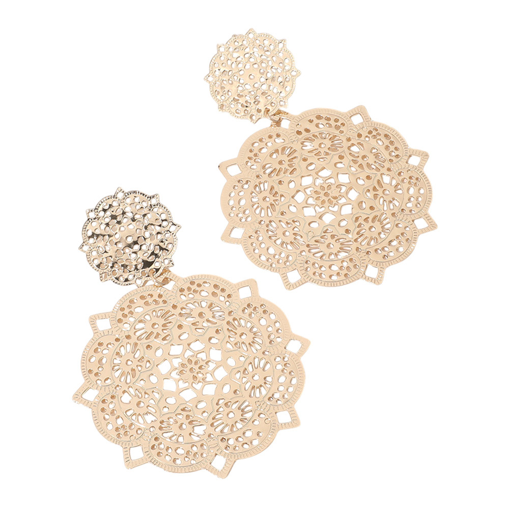 Stone Metal Filigree Flower Centered Resin Petal Flower Earrings