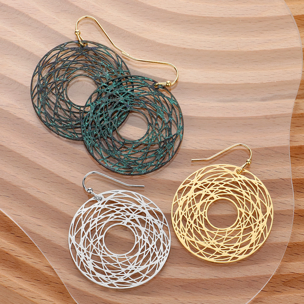 Metal Filigree Donut Ring Dangle Earrings