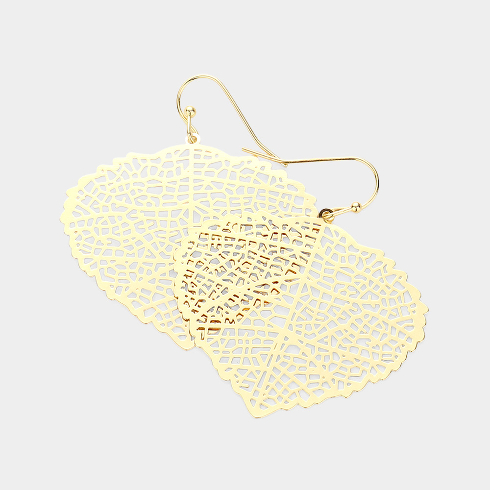 Metal Filigree Leaf Dangle Earrings