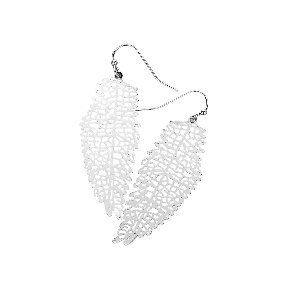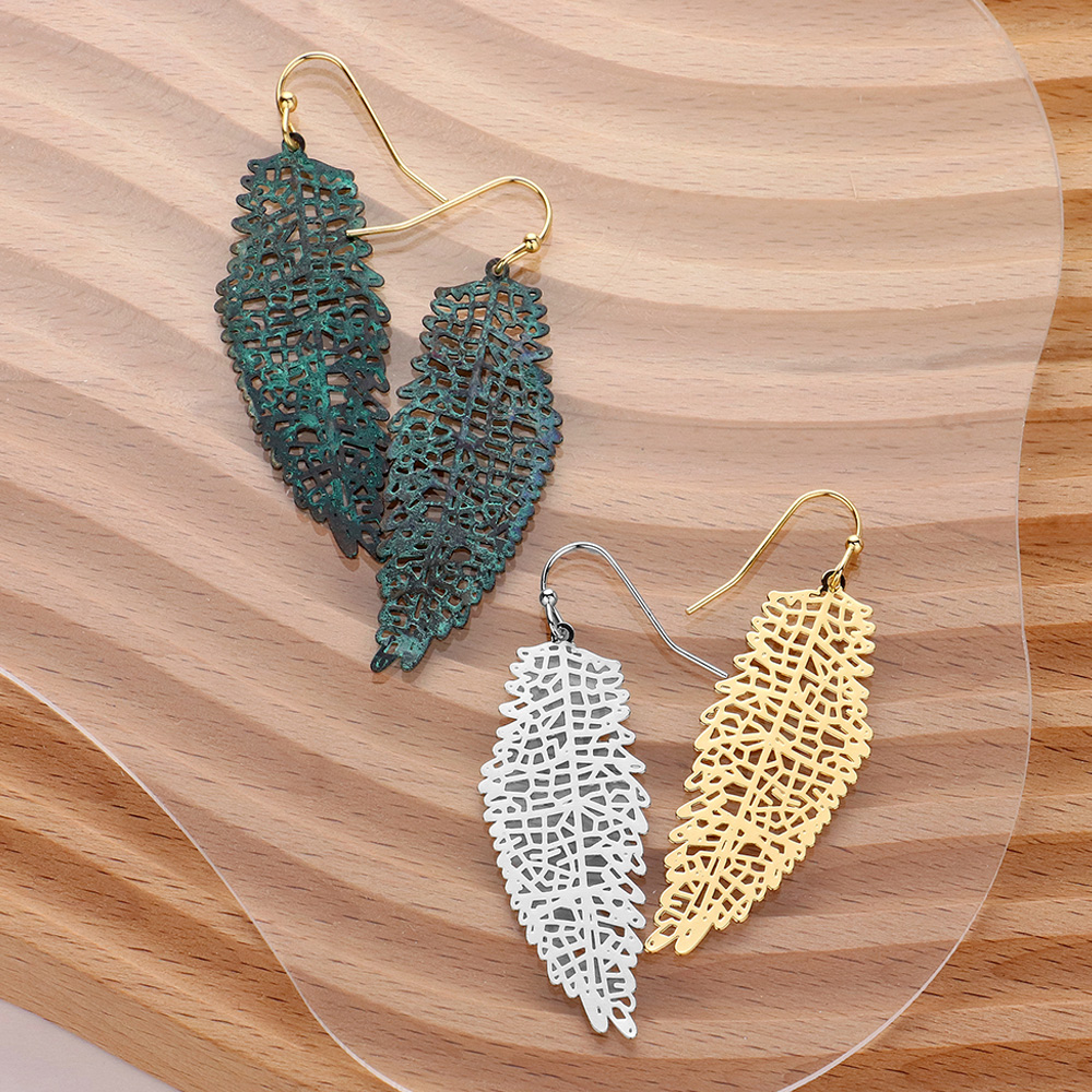 Filigree Flower Leaf Detailed Brass Metal Marquise Dangle Earrings