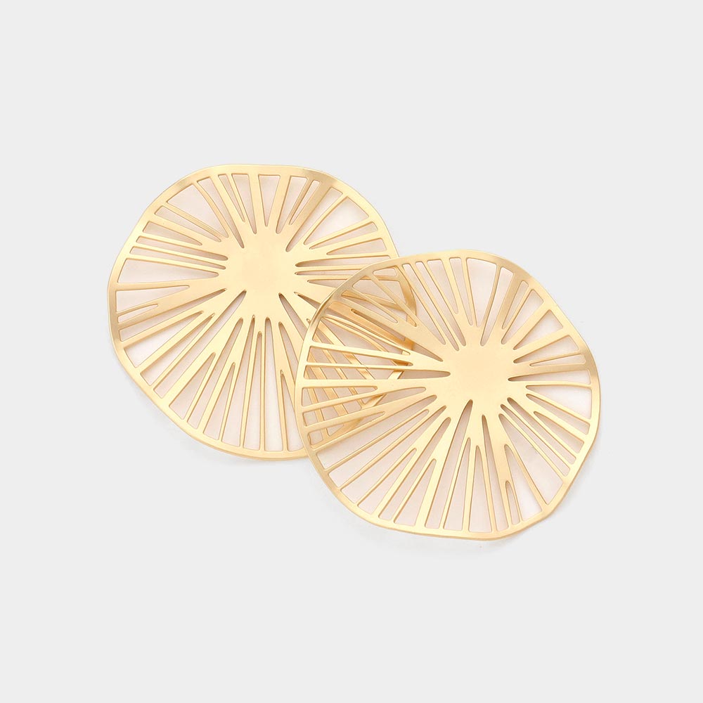 Mardi Gras Open Metal Hexagon Tassel Fringe Dangle Earrings