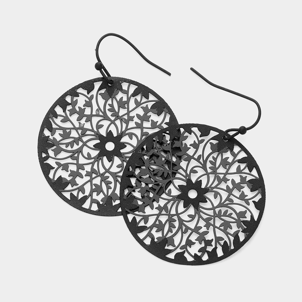 Brass Metal Filigree Tropical Leaf Dangle Earrings