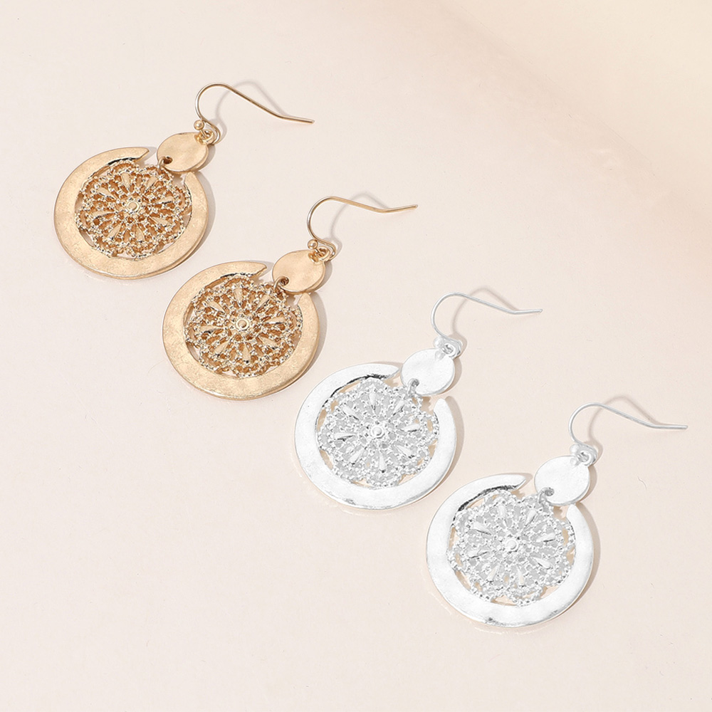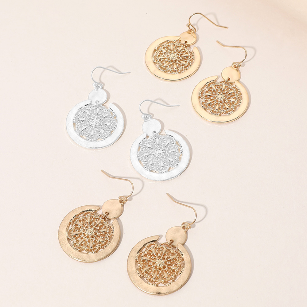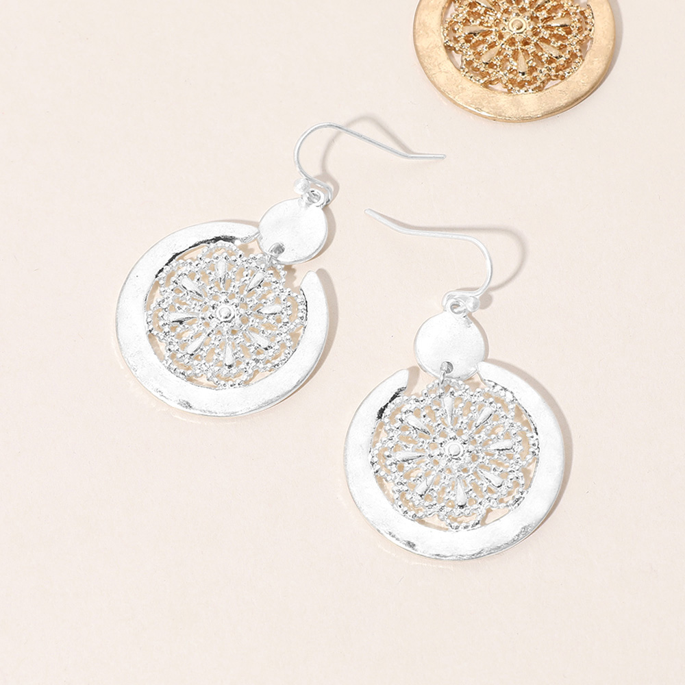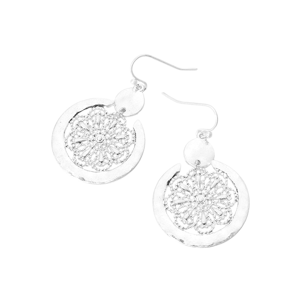 Filigree Flower Leaf Detailed Brass Metal Marquise Dangle Earrings