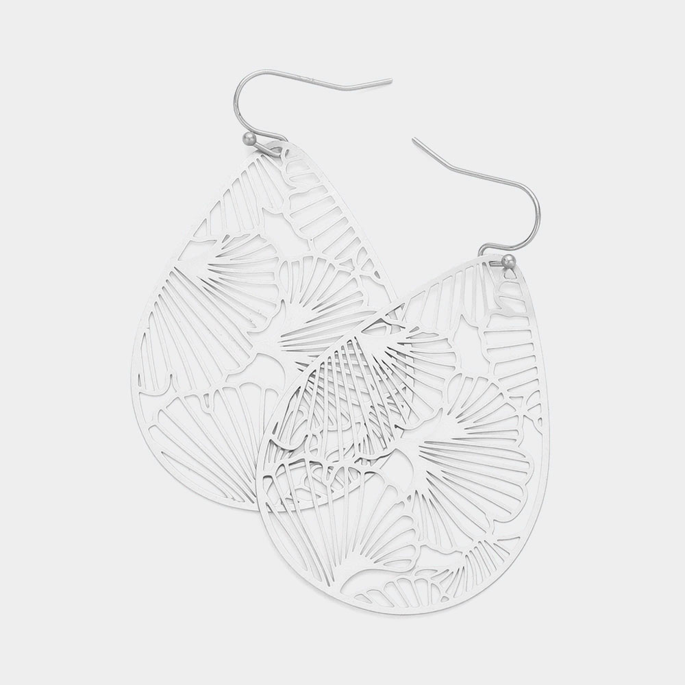 Metal Gingko Leaves Filigree Teardrop Dangle Earrings