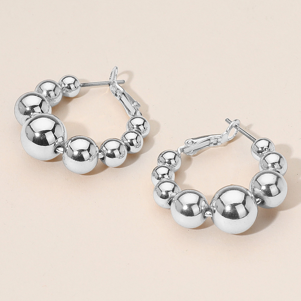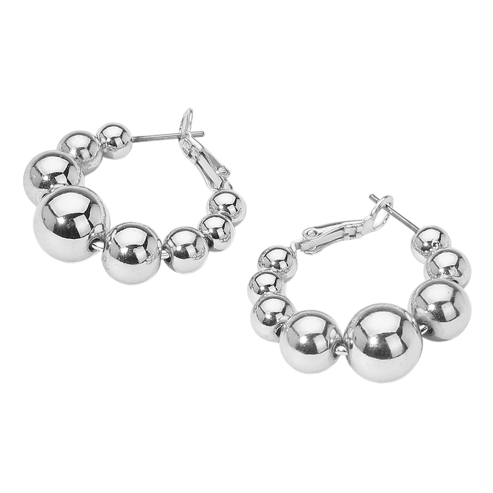 Details • Size : 1.2" X 1.25" • Omega Back • Elevate your accessory game with these beaded hoop earrings featuring graduated spheres for a chic, modern silhouette. Perfect for casual or dressy looks, their versatile design adds bold style and timeless appeal to any outfit. • Brass • Lead and Nickel Compliant