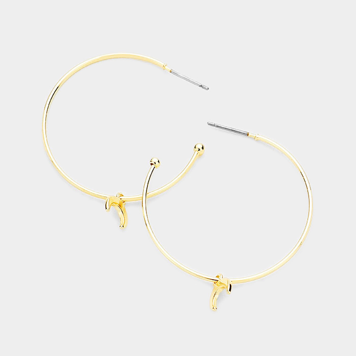 Gold Dipped Triangle Princess Cut CZ Stone Embellished Hoop Earrings
