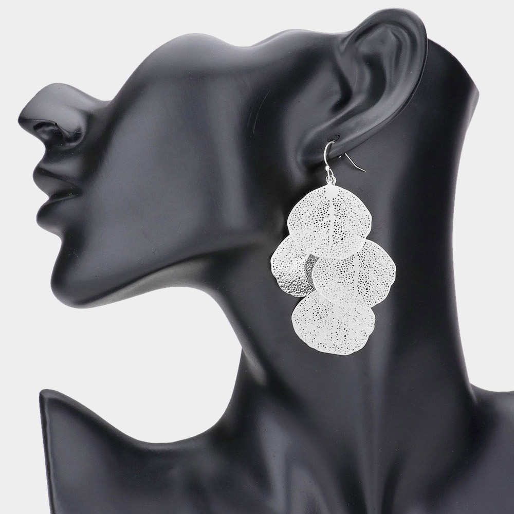 Stone Pointed Metal Filigree Flower Link Dangle Earrings