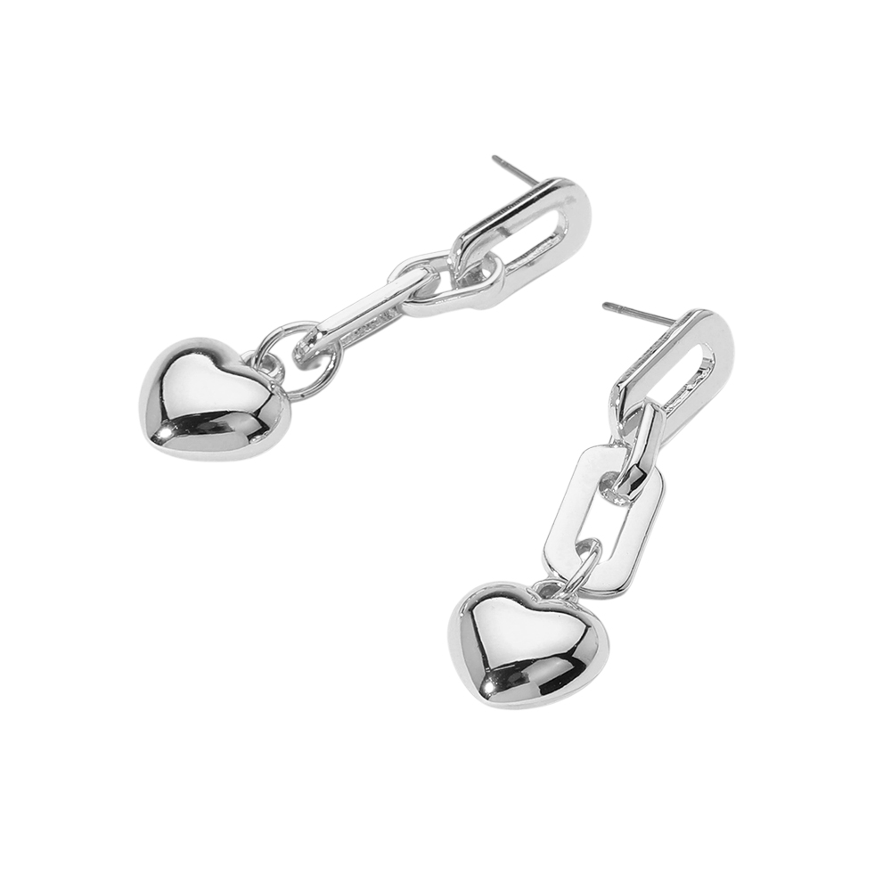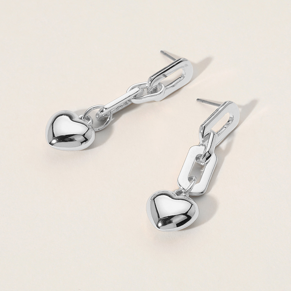 Metal Paperclip Link Dropdown Puffy Heart Dangle Earrings