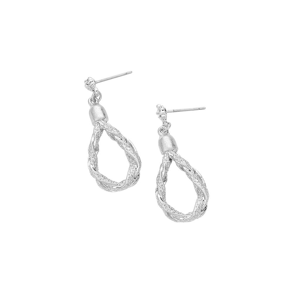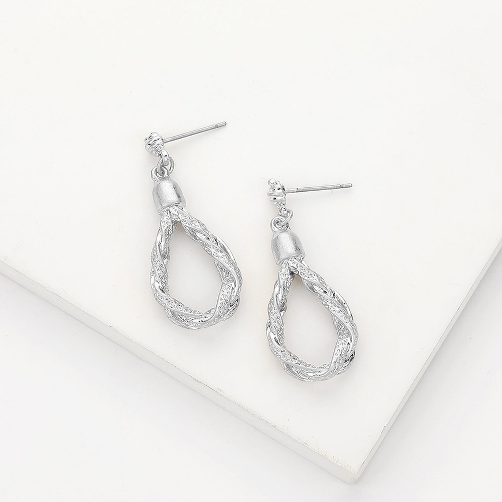 Two Tone Twisted Knot Metal Cross Dangle Earrings