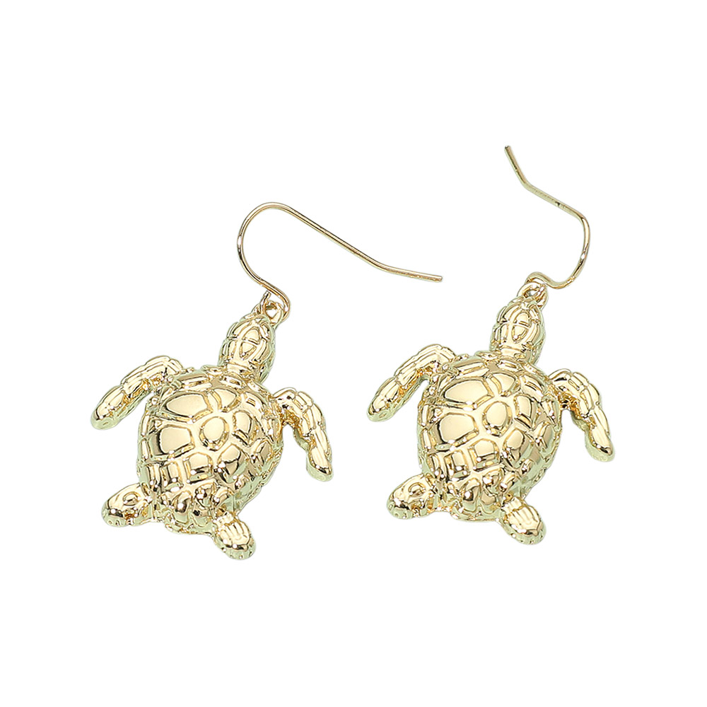 Details • Size : 1" X 1.5" • Fish Hook Back • Charming sea turtle drop earrings feature a detailed sculpted design that brings coastal inspiration to everyday style. Lightweight and easy to wear, they add playful movement and a unique accent to casual outfits or dressier looks for a standout finish. • Lead and Nickel Compliant