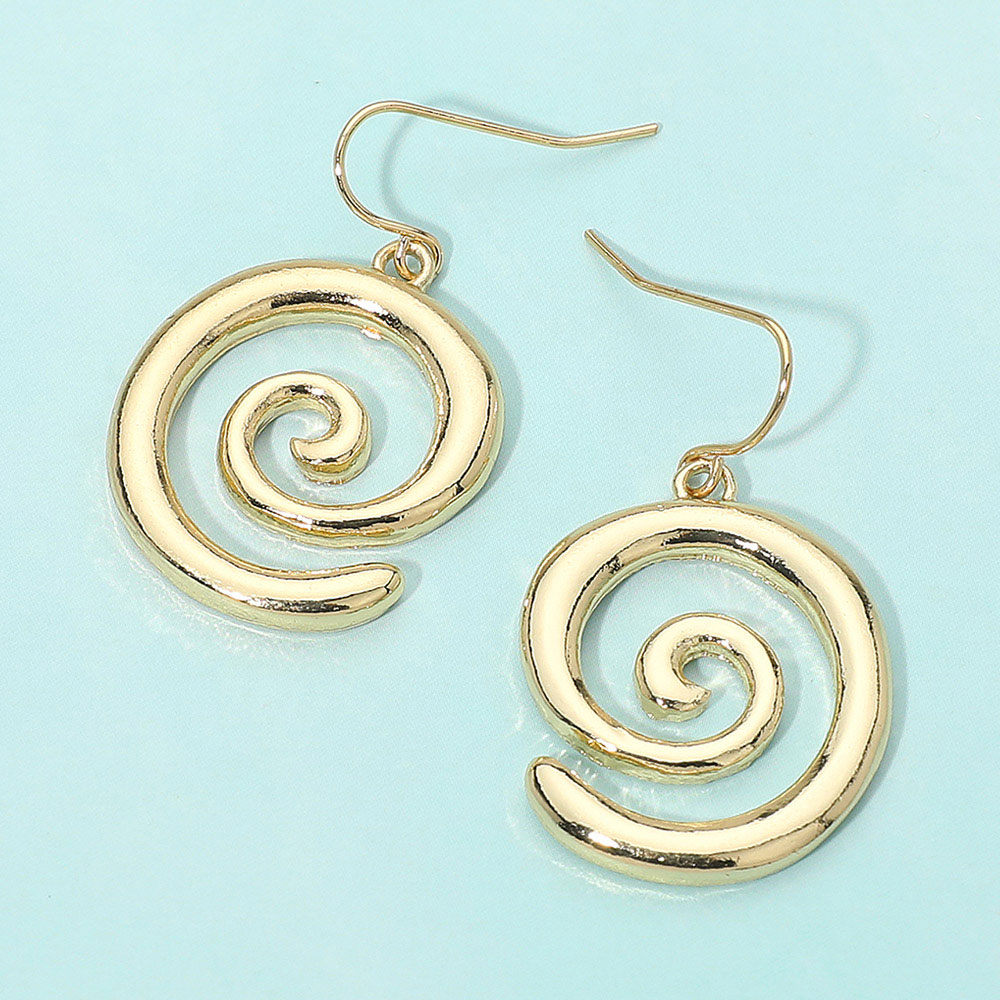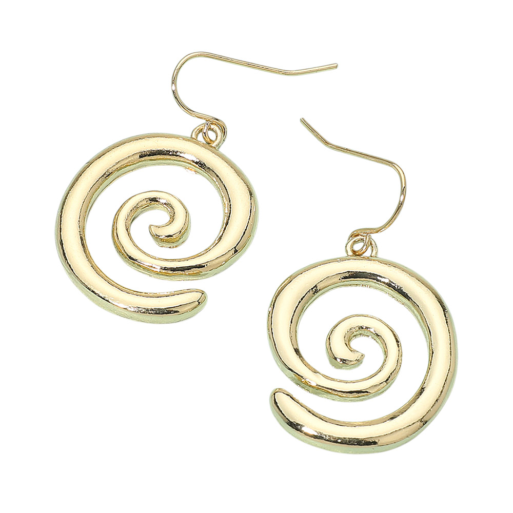 Details • Size : 0.8" X 1.4" • Fish Hook Back • Add a touch of artistic flair with these spiral drop hook earrings, designed with a flowing, sculptural silhouette that catches the light beautifully. Lightweight and versatile, they bring subtle movement and standout style to everyday wear or special occasions. • Lead and Nickel Compliant