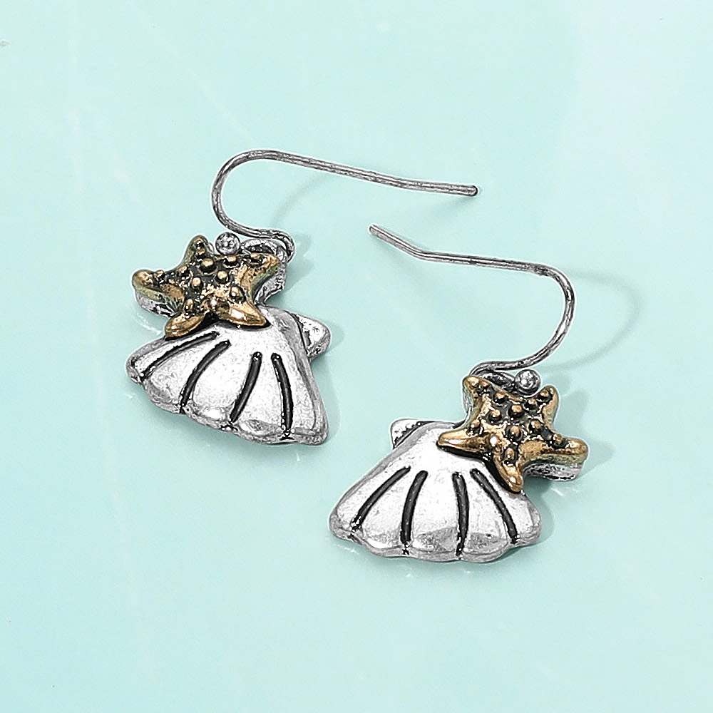 Metal Starfish Shell Dangle Earrings