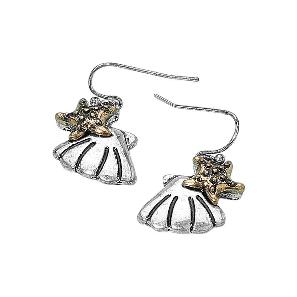 • Seashell-shaped earrings with delicate starfish accents, perfect for beach lovers. A coastal-themed accessory that adds a whimsical touch to any casual or summer outfit.
