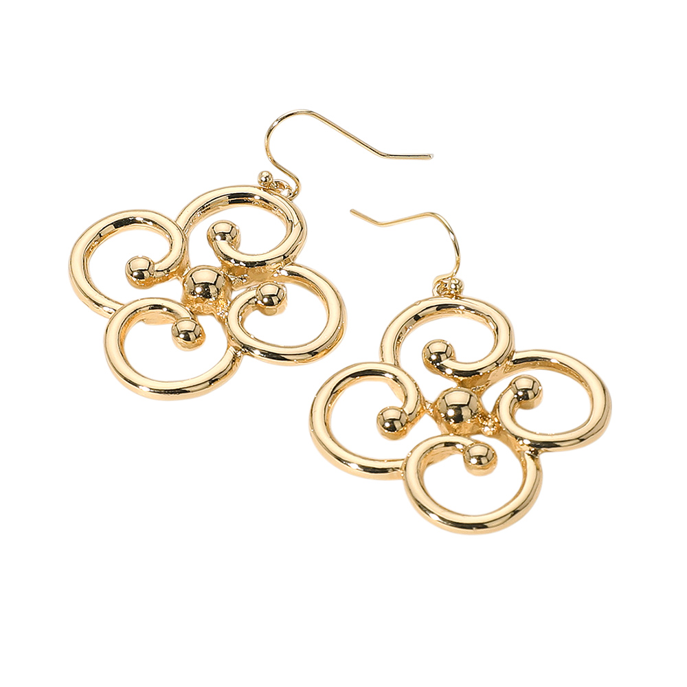 Details • Size : 1.3" X 1.75" • Fish Hook Back • Turn heads with these abstract swirl drop earrings, designed with an artistic arrangement of rounded loops and central bead accents. Their sculptural silhouette adds an expressive touch to both casual and elevated looks, offering dynamic movement and modern flair. • Lead and Nickel Compliant
