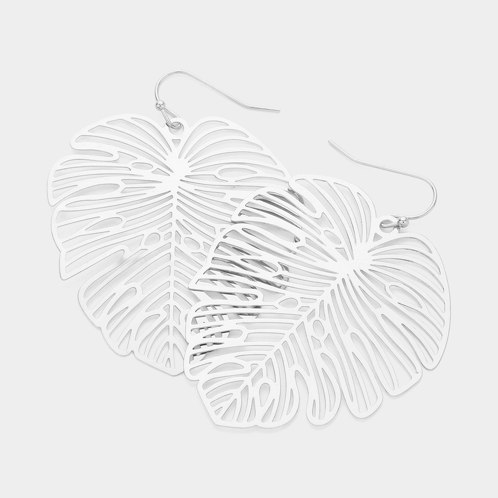 Metal Tropical Leaf Dangle Earrings