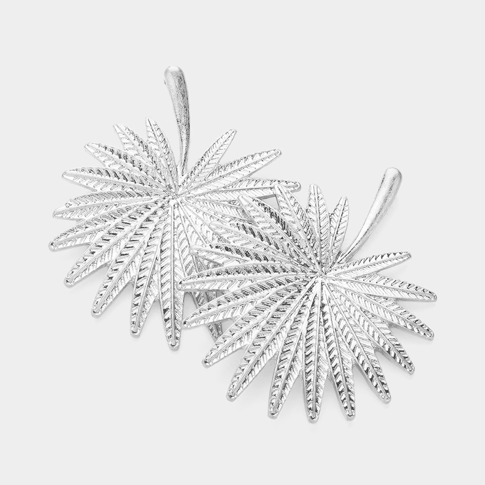 CZ Stone Paved Butterfly Accent Marquise Stone Leaf Flower Evening Stud Earrings