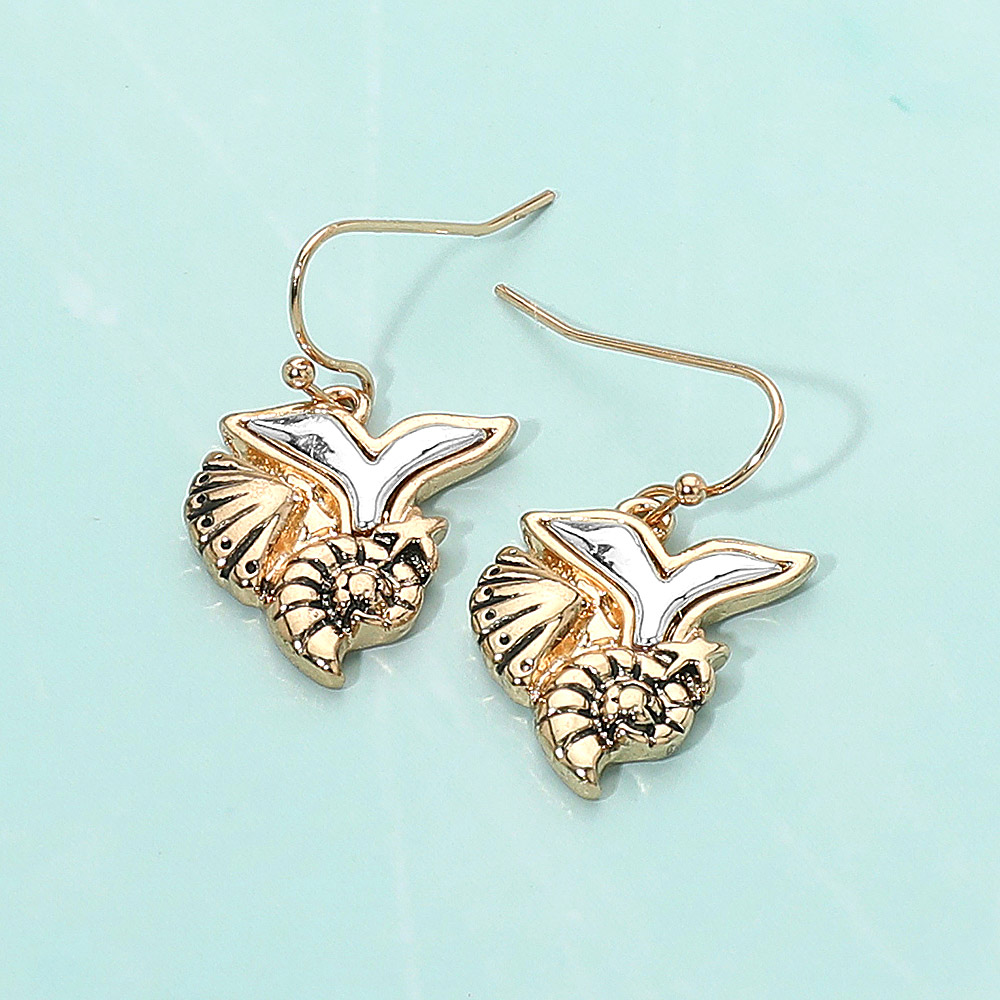Metal Whale Tail Starfish Conch Shell Dangle Earrings