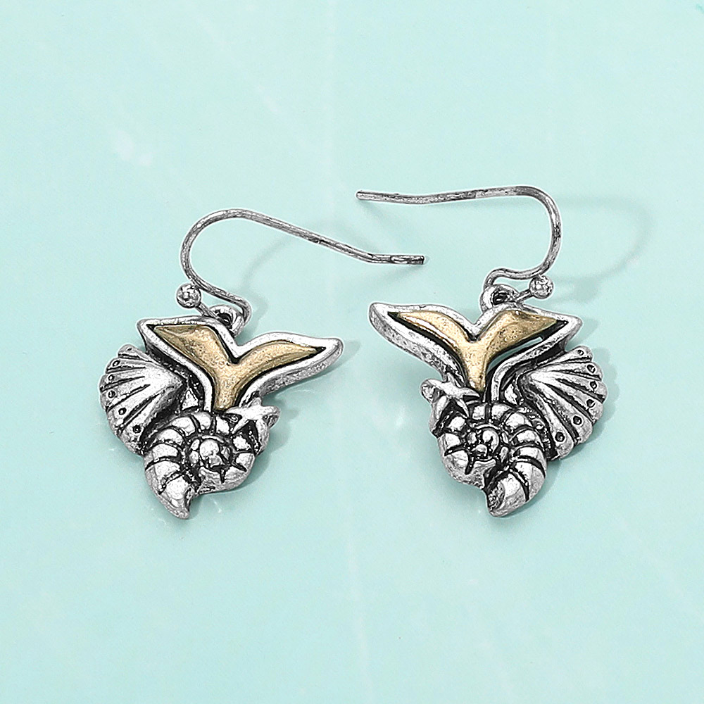 Metal Whale Tail Starfish Conch Shell Dangle Earrings