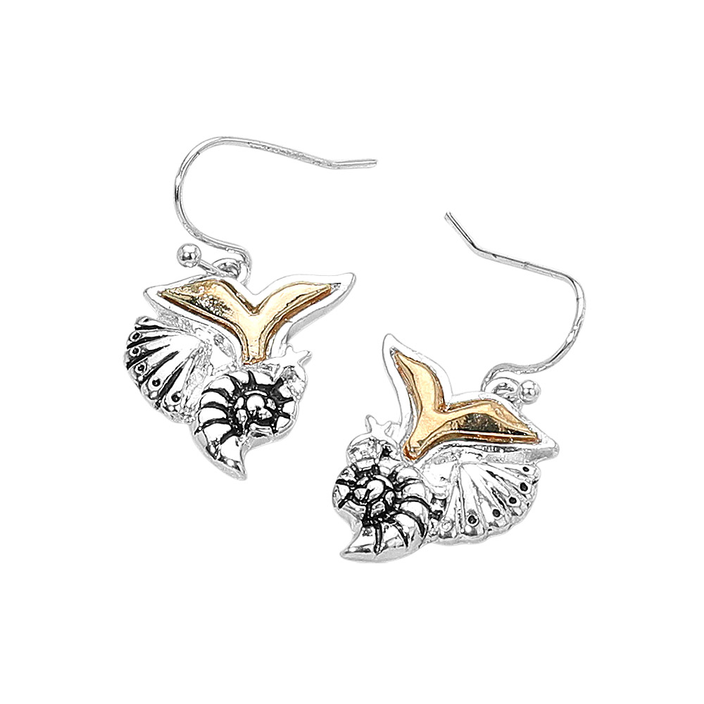 • Nautical-themed earrings featuring a whale tail with shell accents. A playful marine-inspired accessory ideal for beach outings, vacations, or casual ocean-lover style.