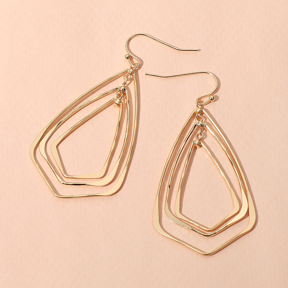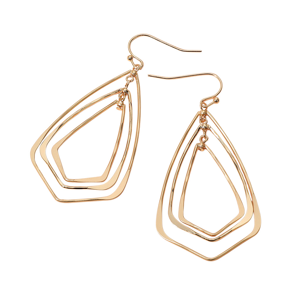 Metal Wire Geometric Triple Layered Dangle Earrings