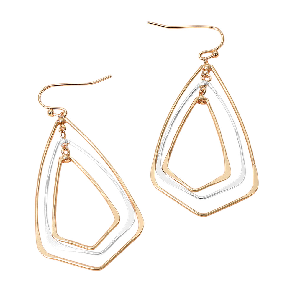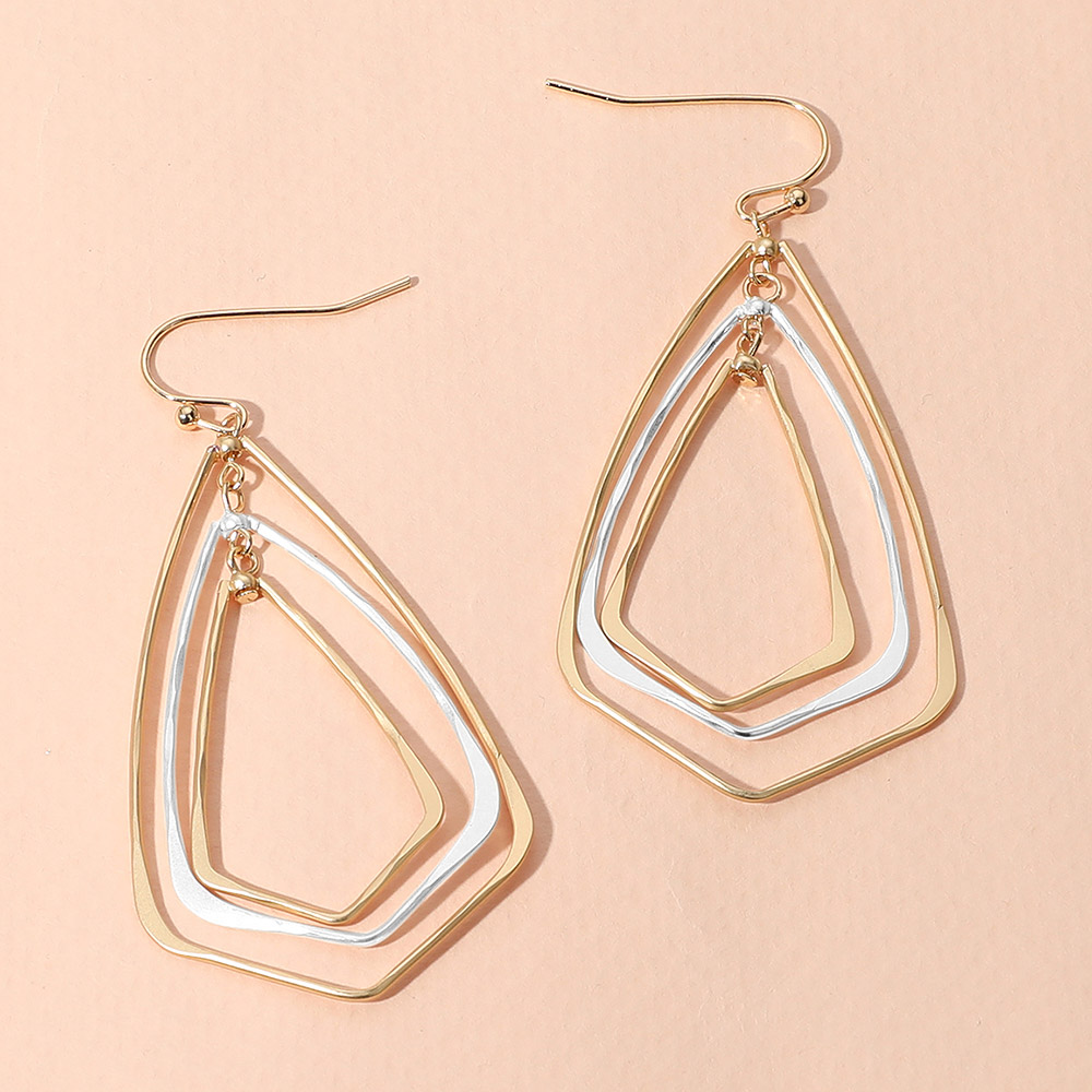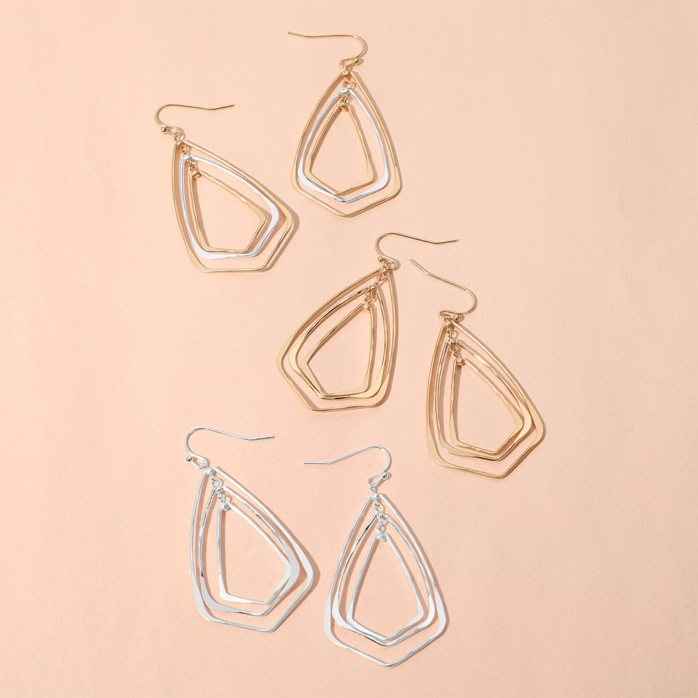 Metal Wire Geometric Triple Layered Dangle Earrings