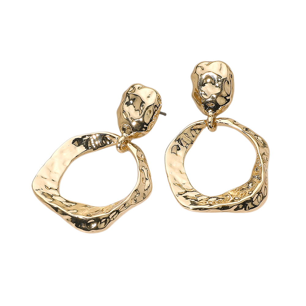 Molten Textured Metal Organic Hoop Dangle Earrings