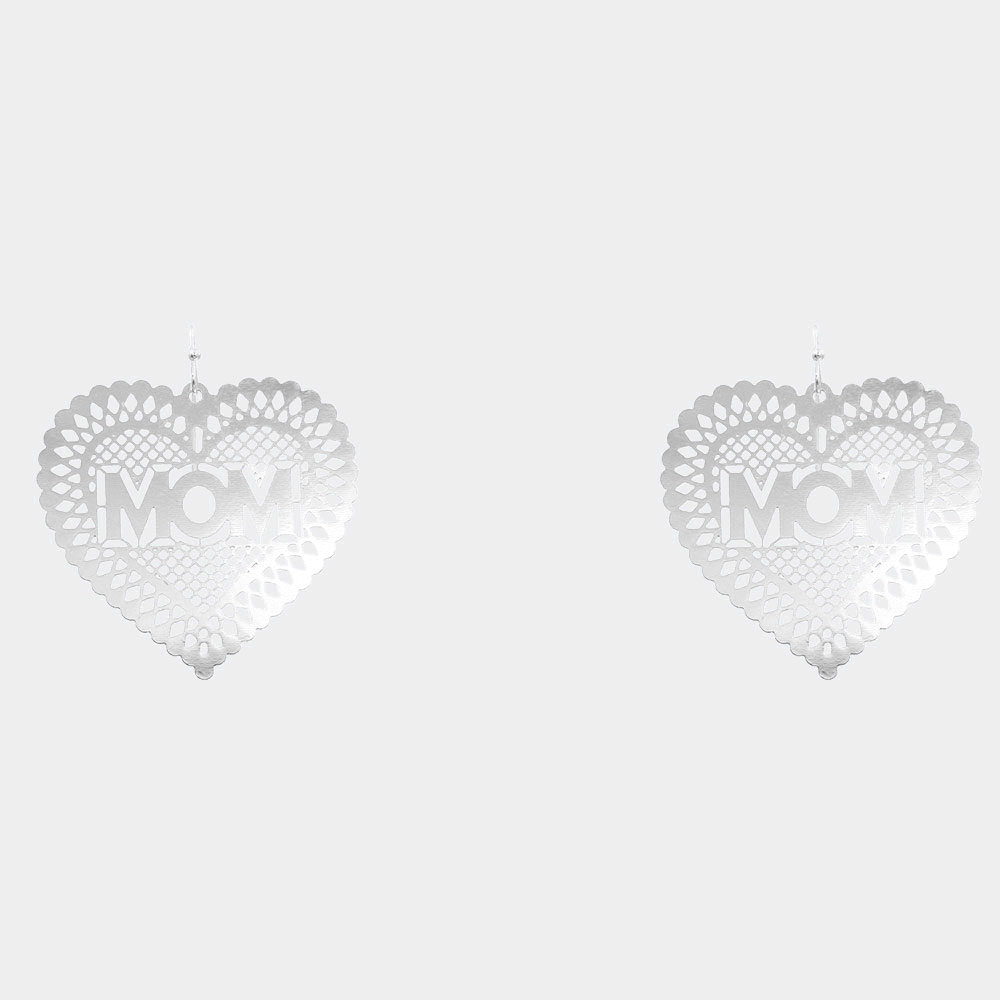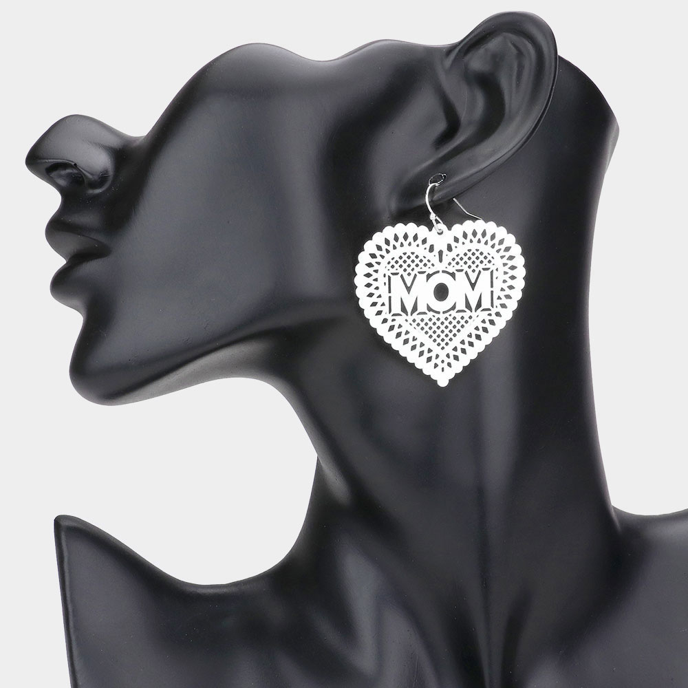 MOM Message Colored Brass Metal Heart Dangle Earrings