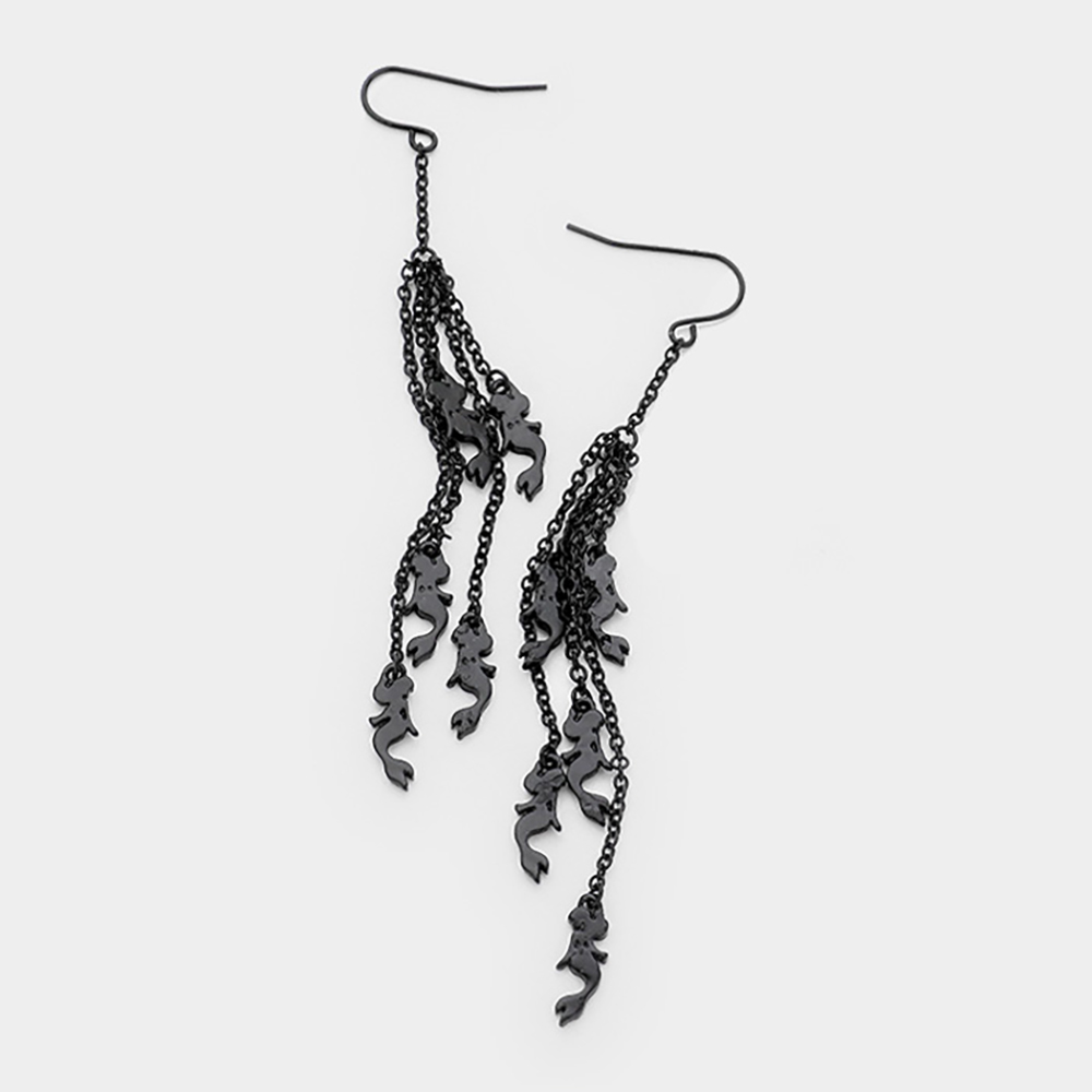 Multi Metal Mermaid Drop Chain Dangle Earrings