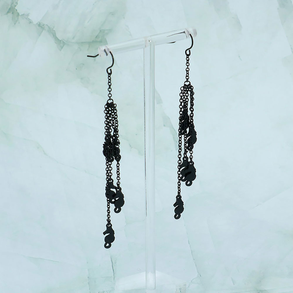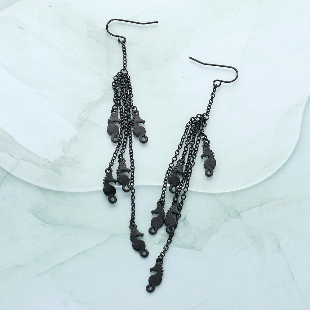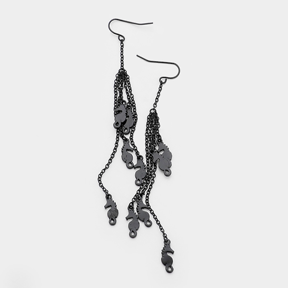 Multi Metal Seahorse Drop Chain Dangle Earrings