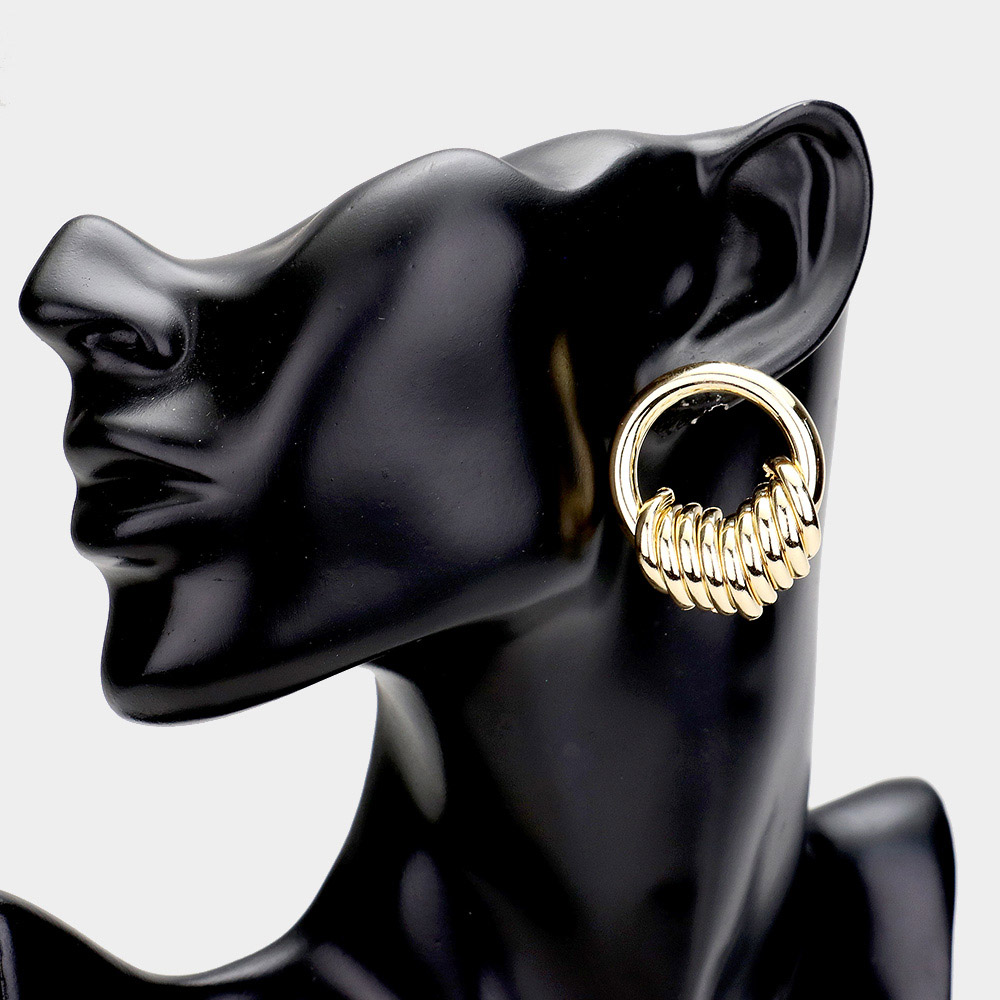 Metal Ball Beaded Open Teardrop Dangle Earrings