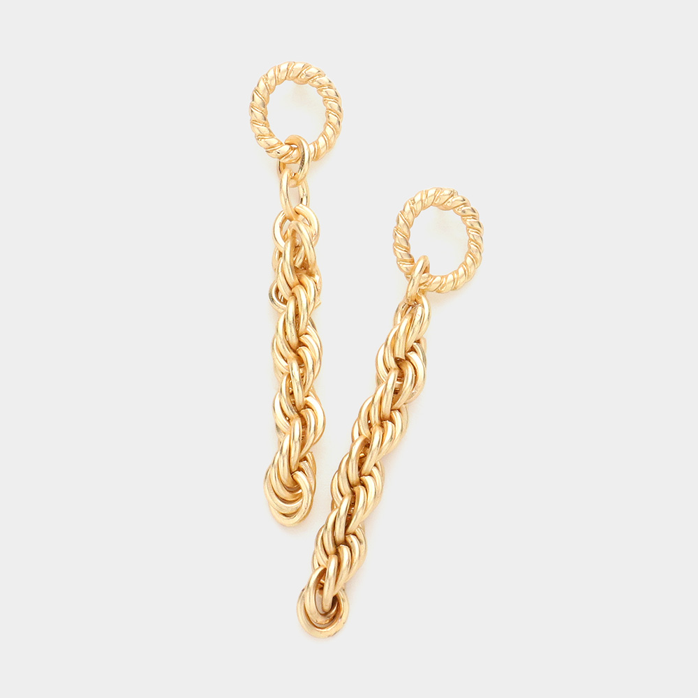 Raffia Wrapped Open Metal Oval Link Half Hoop Earrings